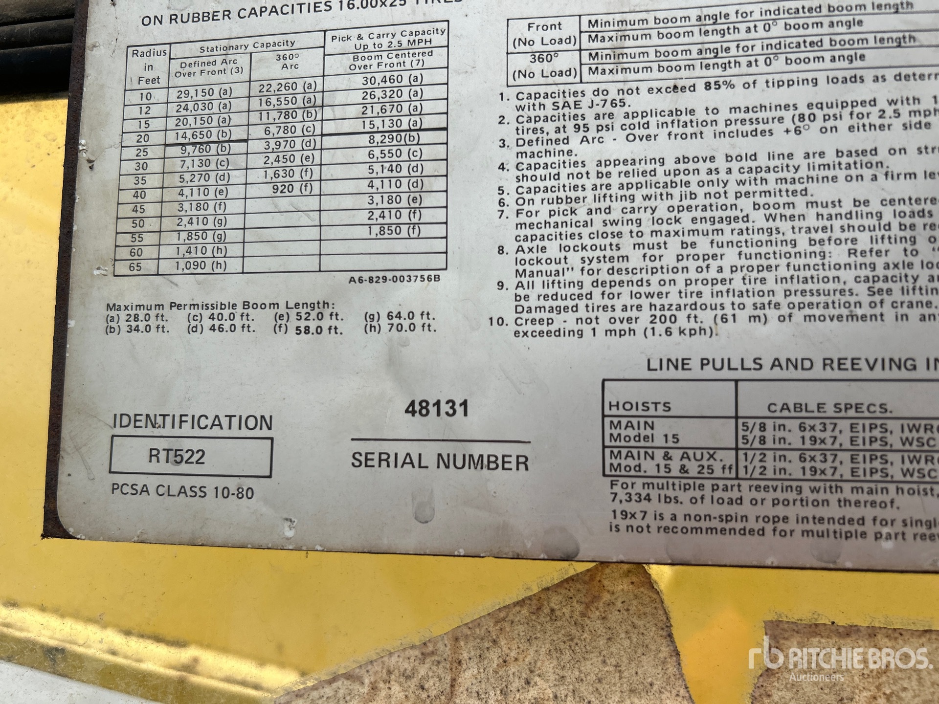 Cummins 6 Cylinder Diesel Engine, 28 ft Minimum 70 ft Maximum Boom Length, 455 lb 15 lb Capacity 2 Sheave Hook Block