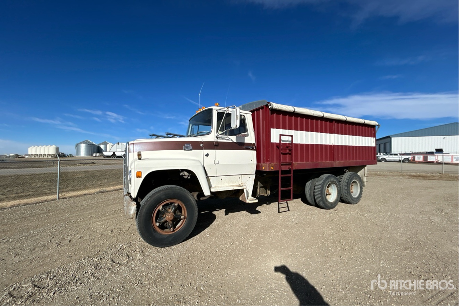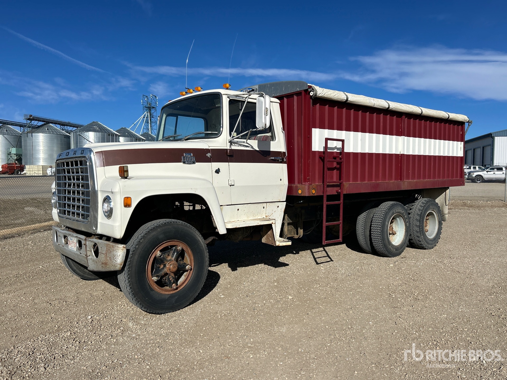 Ford V8 7 L Gasoline Engine, 1979 US EPA Label, Manual Transmission, 11R22.5 Front Tires, 10R22.5 Rear Tires, Spring over Walking Beam Suspension, 204 in Wheelbase, PTO, 17 ft Long x 50 ft High Steel Body, Manual Roll Tarp