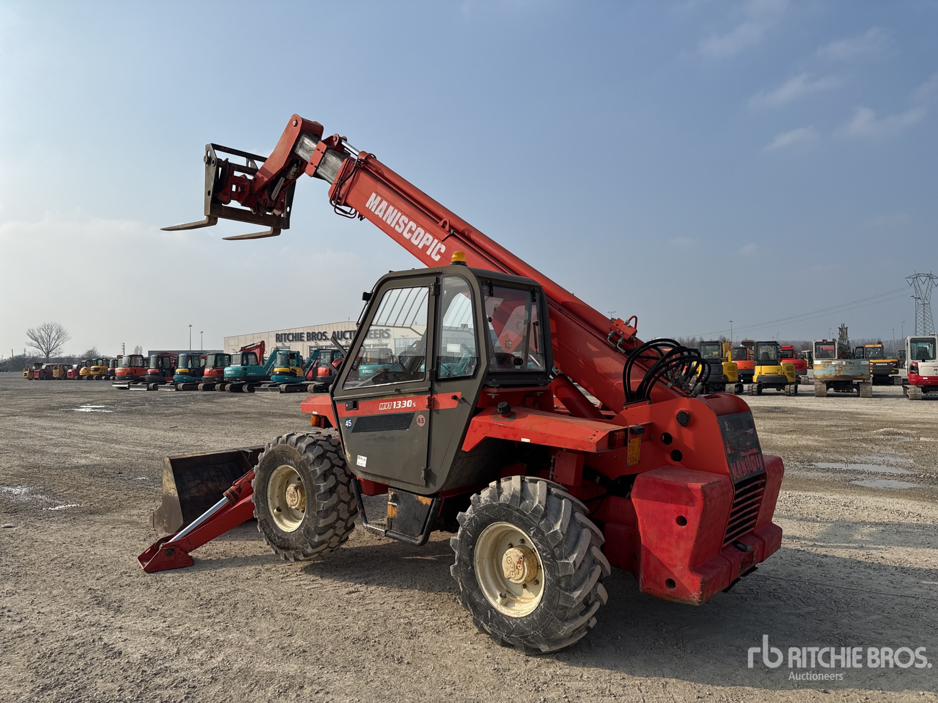 Enclosed Cab, 13 m Max Lift Height, 3000 kg Max Lift Capacity, 1200 mm Forks, 2400 mm Bucket, Outriggers, Auxiliary Hydraulic Plumbing, 405/70R20 Tires
