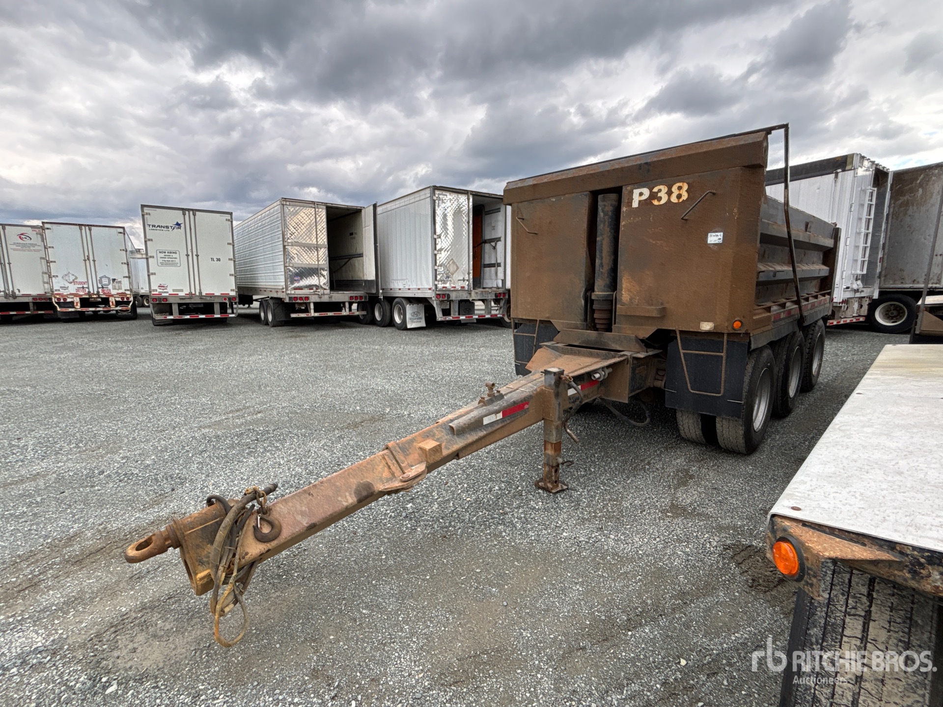 Located in Lane 5 Spot 37, Lunette Ring Hitch, Spring Suspension, 15 ft Body, 42 in Side Walls, Steel Body, Air Powered Roll Tarp, 11R22.5 Tires