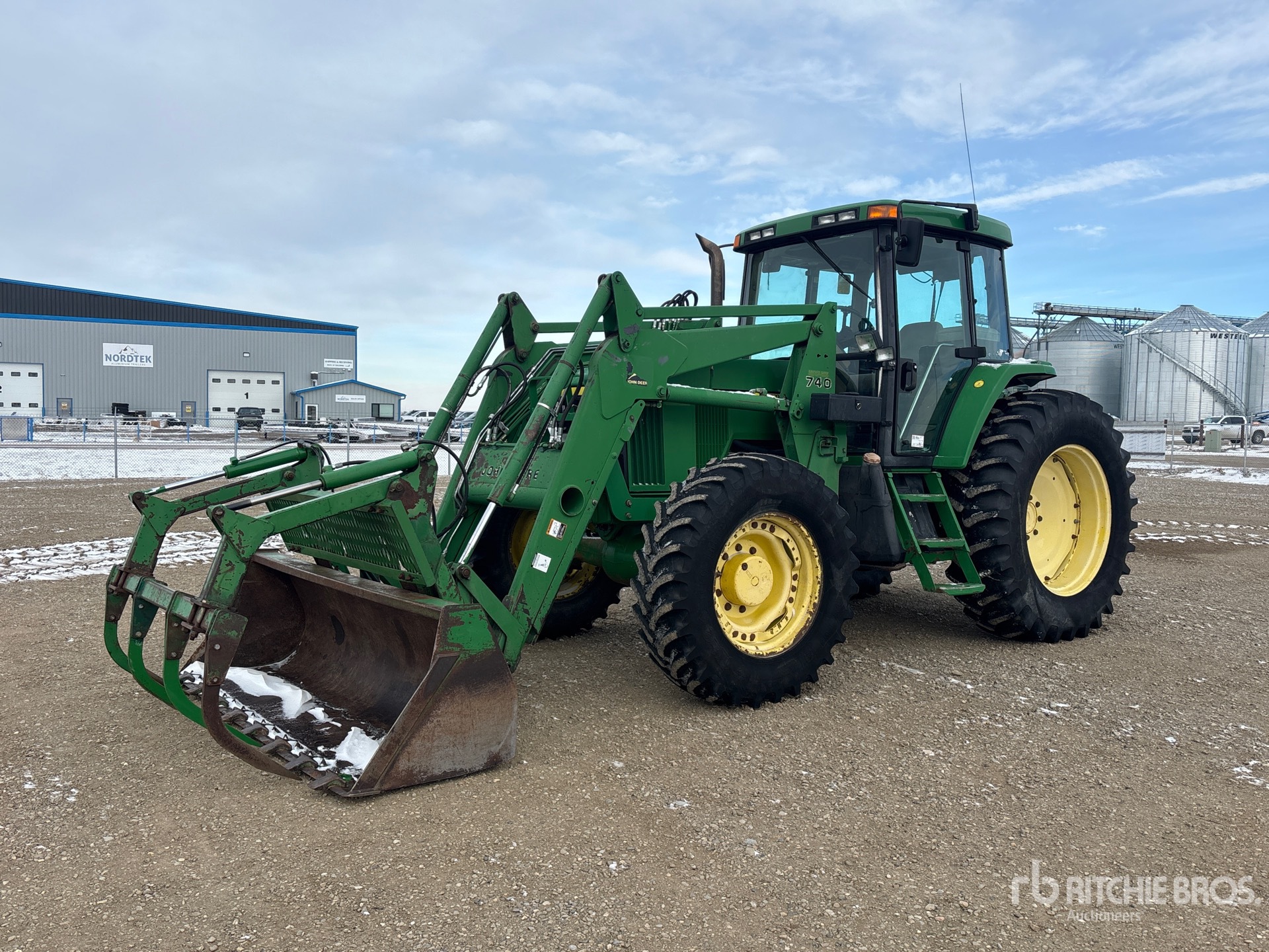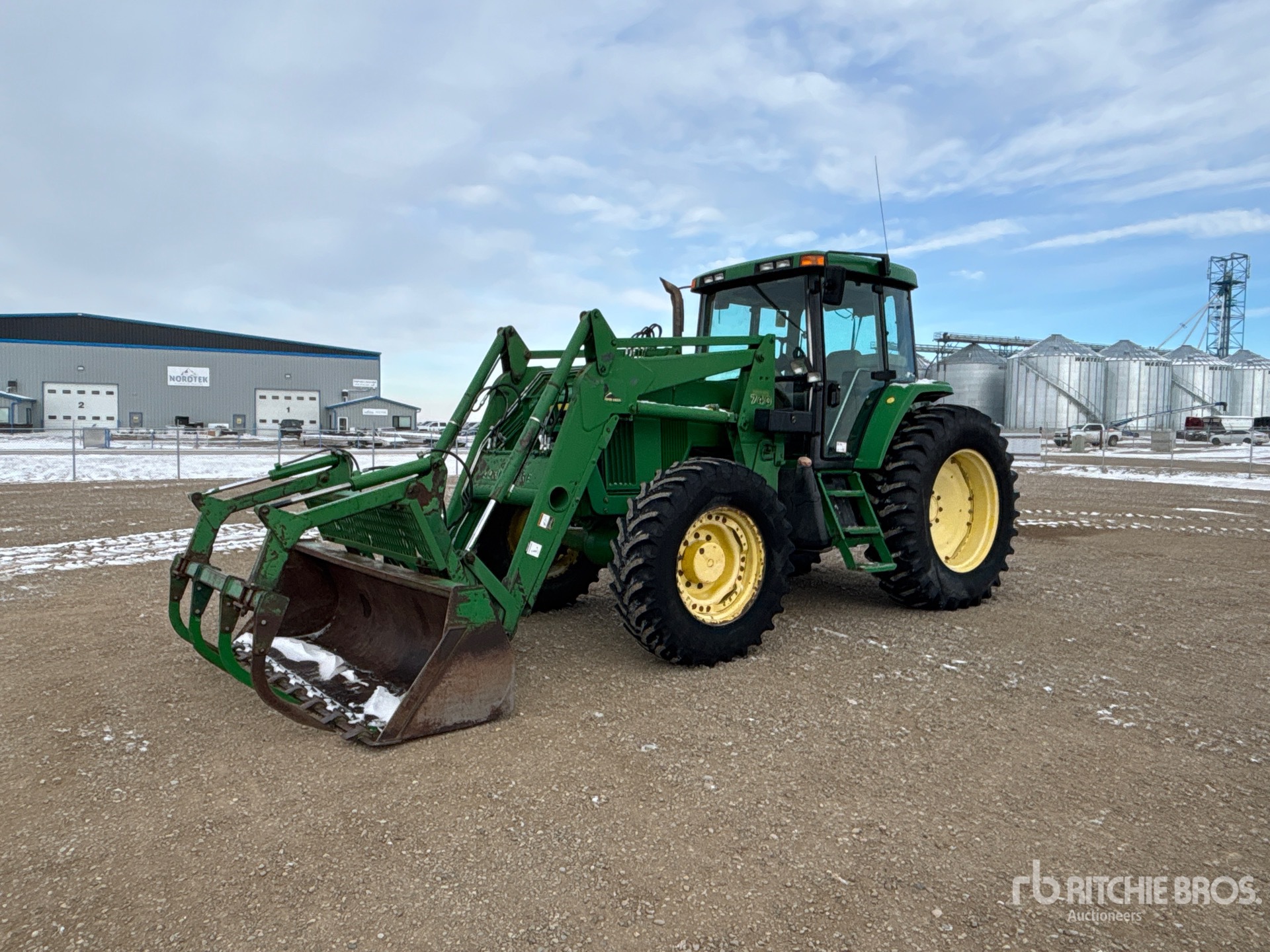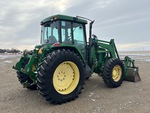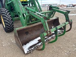Enclosed Cab, Air Conditioner, Air Ride Seat, 16 Forward, Partial Power Shift, Left Hand Reverser, 129 hp Engine, 2000 US EPA Label, John Deere 740 Loader w/Joystick, 96 in Grapple Bucket, 3 Rear Remotes, Exterior 3-Point Hitch Controls, 540 PTO, 3-Point Hitch w/ Quick Hitch, Drawbar, 14.9x28 Front Tires, 18.4x38 Rear Tires