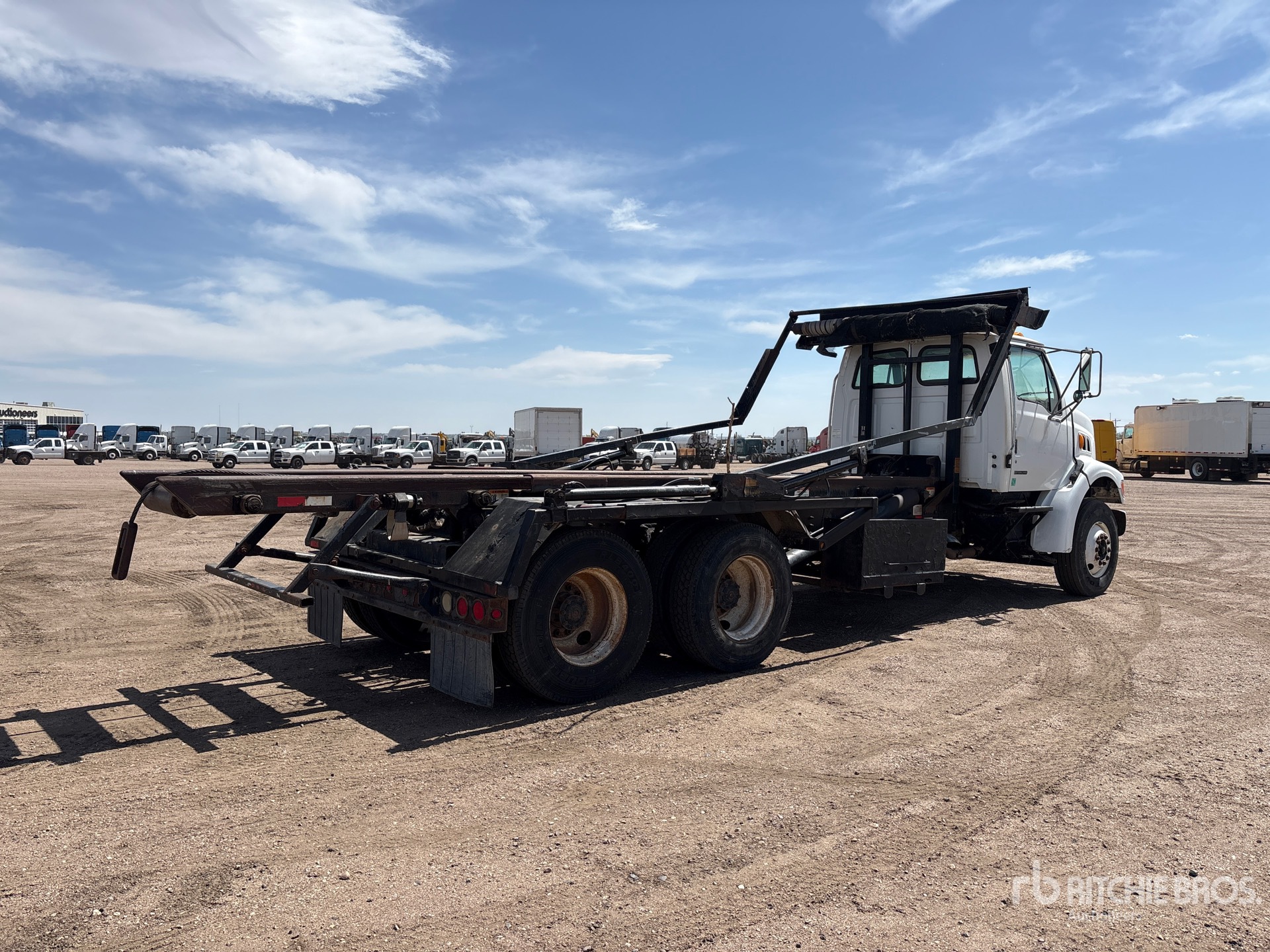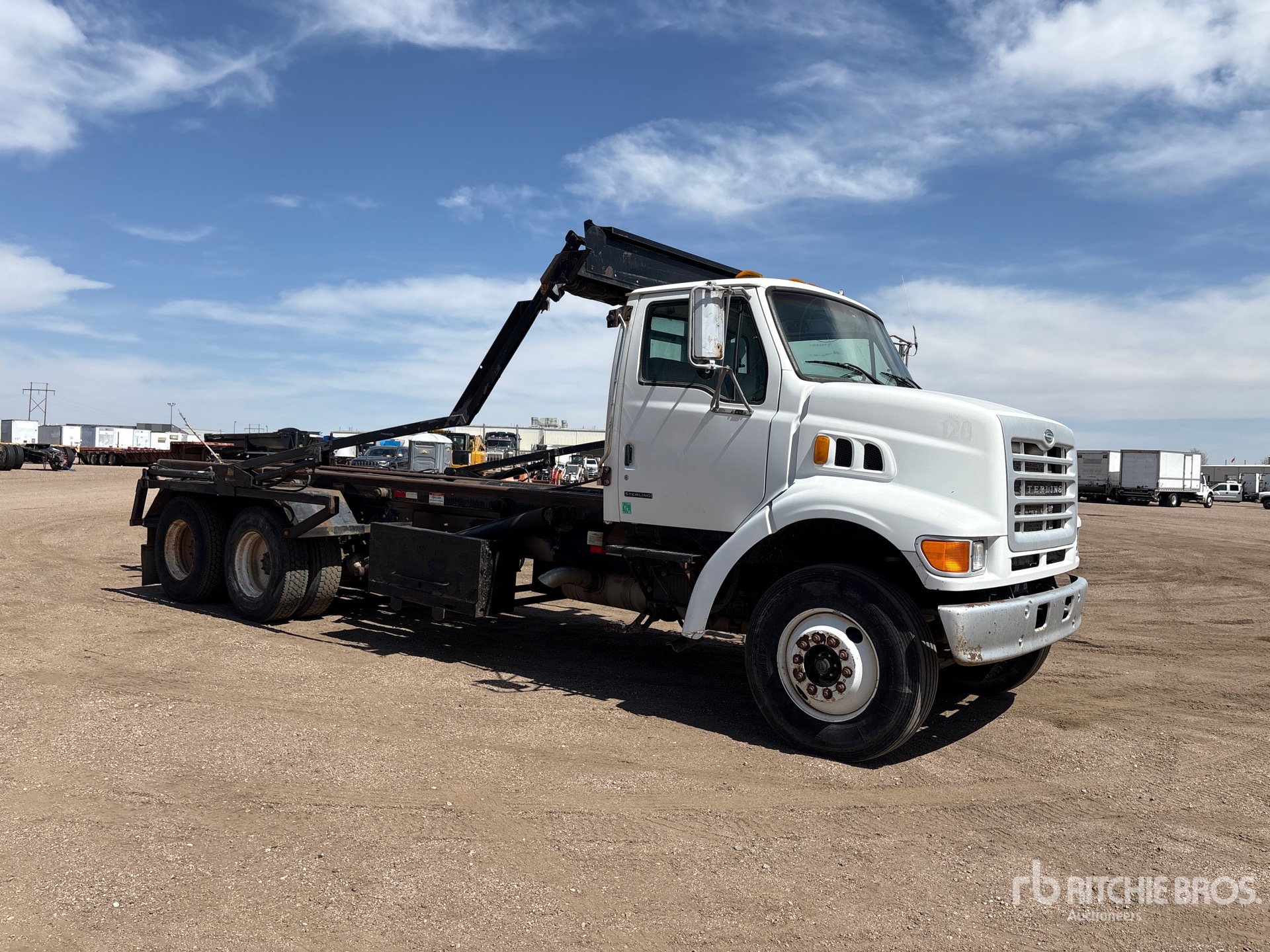Located in Lane 23 Spot 26, Cat 3126 6 Cylinder 7.2 L Diesel 230 hp Engine, 2003 US EPA Label, Allison MD-3560P Automatic Transmission, Differential Lock, 13880 lb Front Axle, 40000 lb Rears, Meritor RT-40-145 Drive Axles, 6.14:1 Axle Ratio, 53880 lb GVWR, 11R22.5, Double Frame, Hendrickson RT/RTE Series Spring over Walking Beam Suspension, 243 in Wheelbase, PTO, K-PAC Roll-Off Body, Outside Rail, 24 ft Hoist, Winch