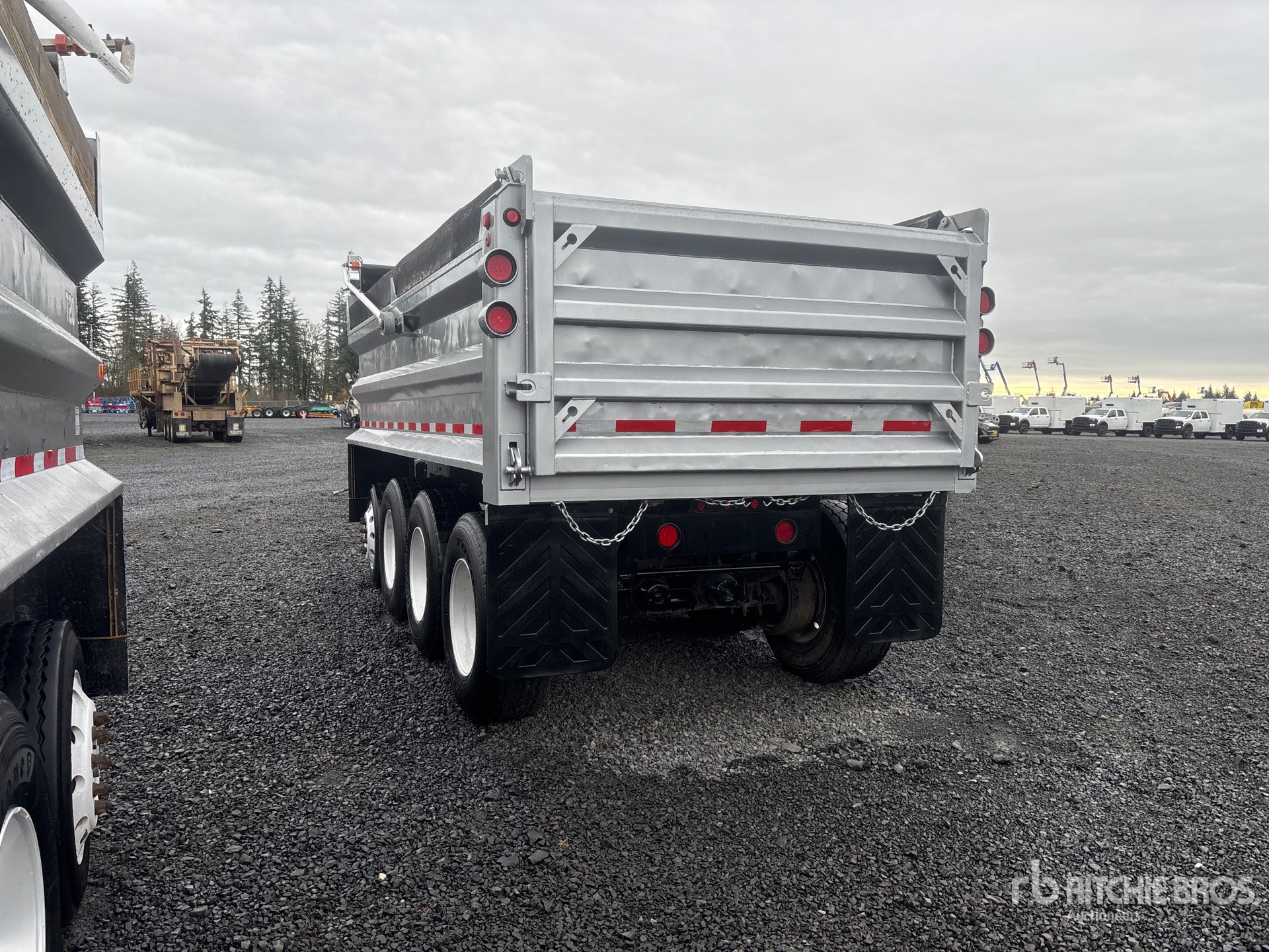 Located in Lane 38 Spot 8, Lunette Ring Hitch, Spring Suspension, Lift 1st- Axles, 17 ft 11 in Body, 39 in Side Walls, Steel Body, Electric Roll Tarp, Aluminum Wheels, 385/65R22.5 Super Single Tires, 14000 lb GVWR