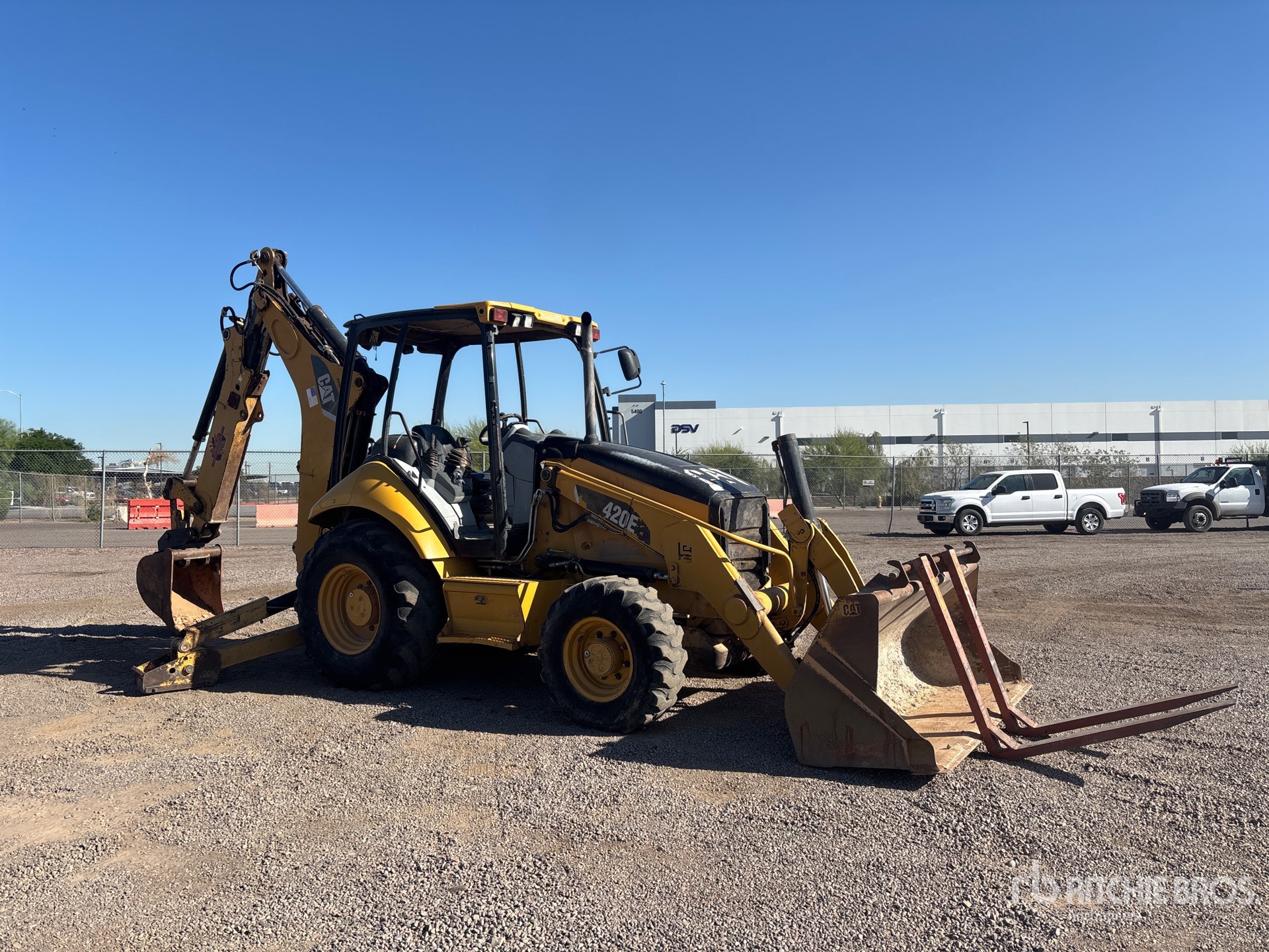 Located in Lane 2 Spot 30, Open Operator Station, Backhoe Pilot Controls, Manual Coupler, 87 in Loader Bucket, Forks, Quick Coupler, 20 in Backhoe Digging Bucket, Rear Auxiliary Hydraulics, Thumb Bracket