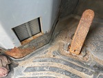 The two rear wheels have significant rust on the inner side