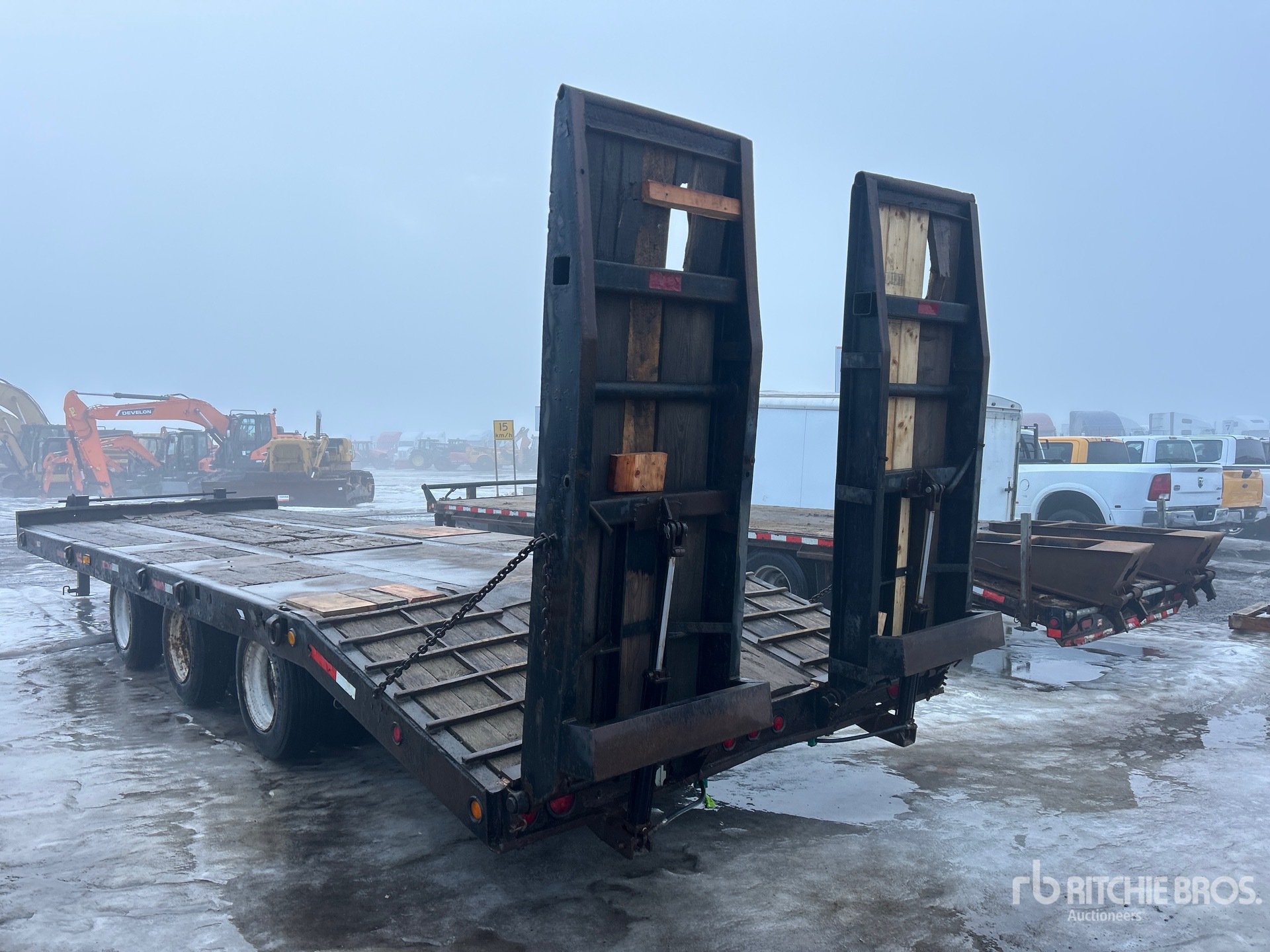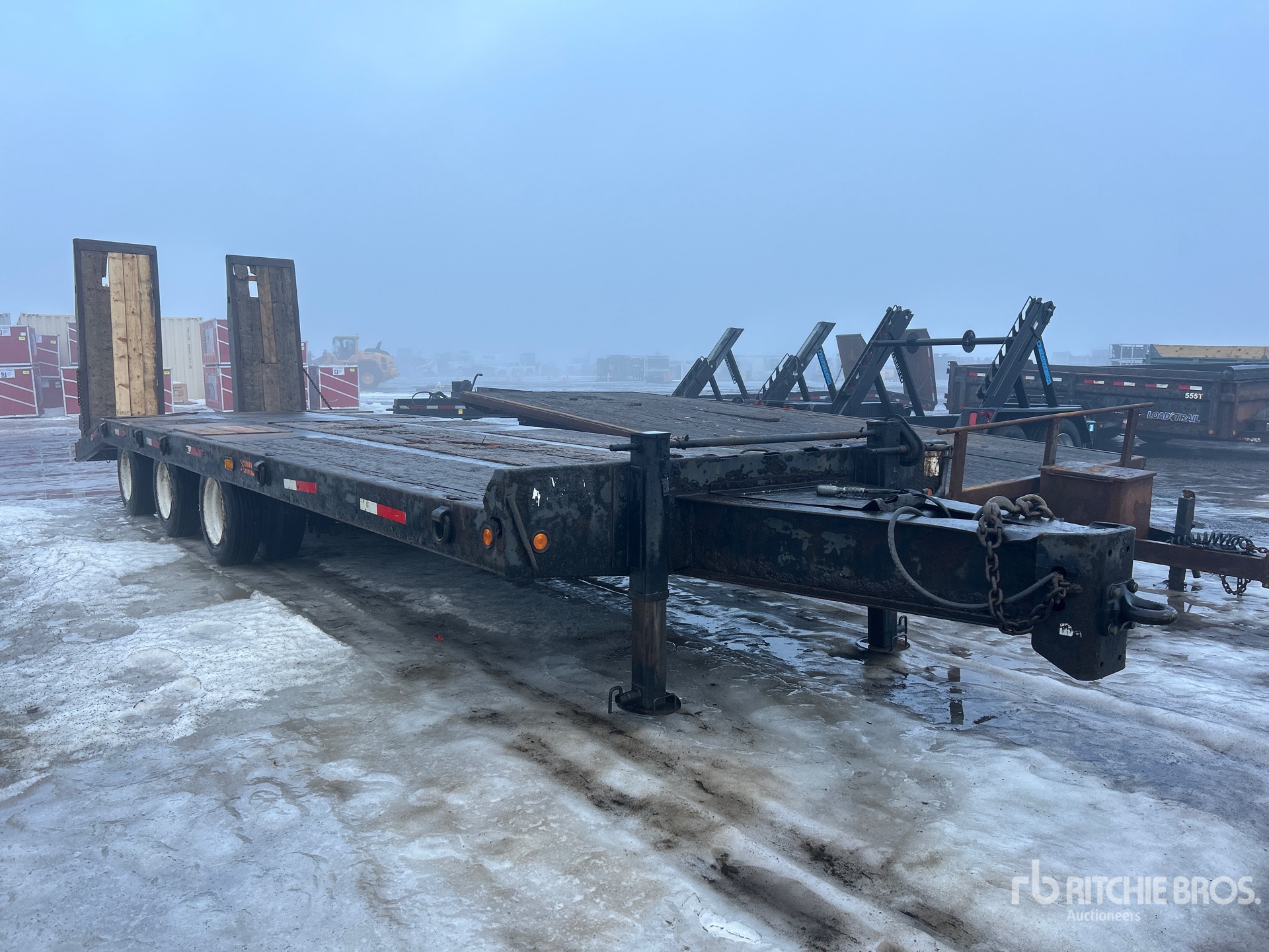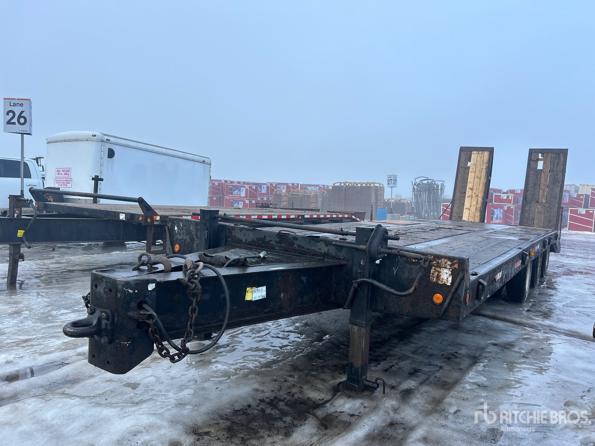 Lunette Ring Hitch, Spring Suspension, Air Brakes, 24 ft Main Deck, 6 ft Fixed Dovetail, 102 in Usable Deck Width, Deck Over Tires, Hydraulic Ramps, Wood Flooring, 215/75R17.5 Tires