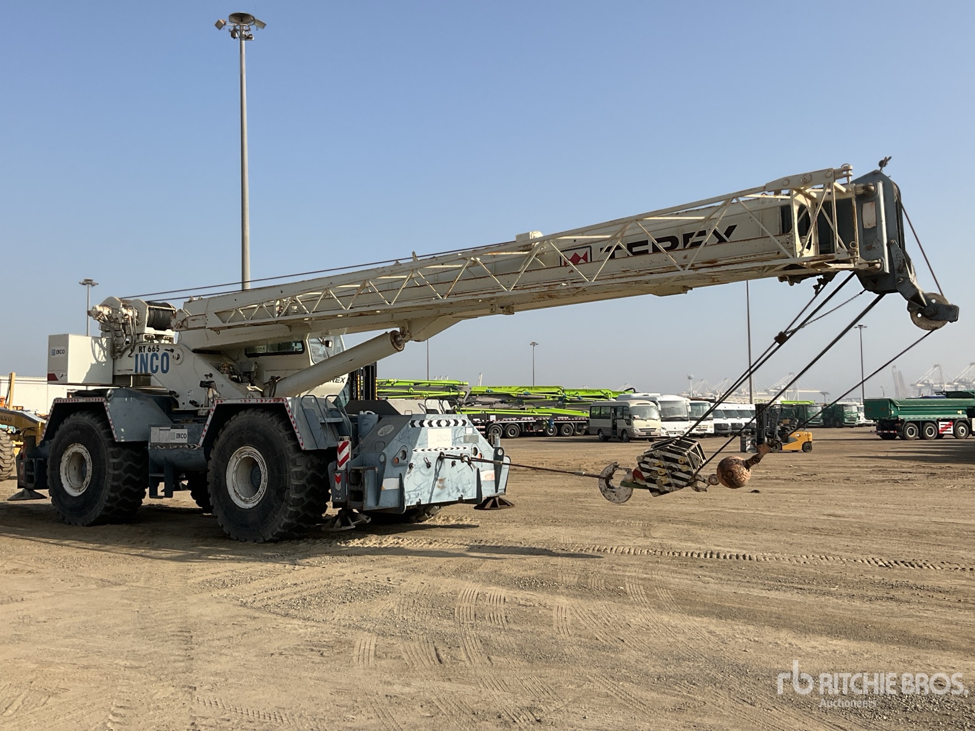 Air Conditioner, Anti Two-Block, Greer RCI 510 Load Moment Indicator, Cummins 6 Cylinder Diesel Engine, Auxiliary Hoist, Rooster Sheave, Extendable Swingaway Jib, 60 ton Capacity Terex 6 Sheave Hook Block, Overhaul Ball, capacity 59 metric ton