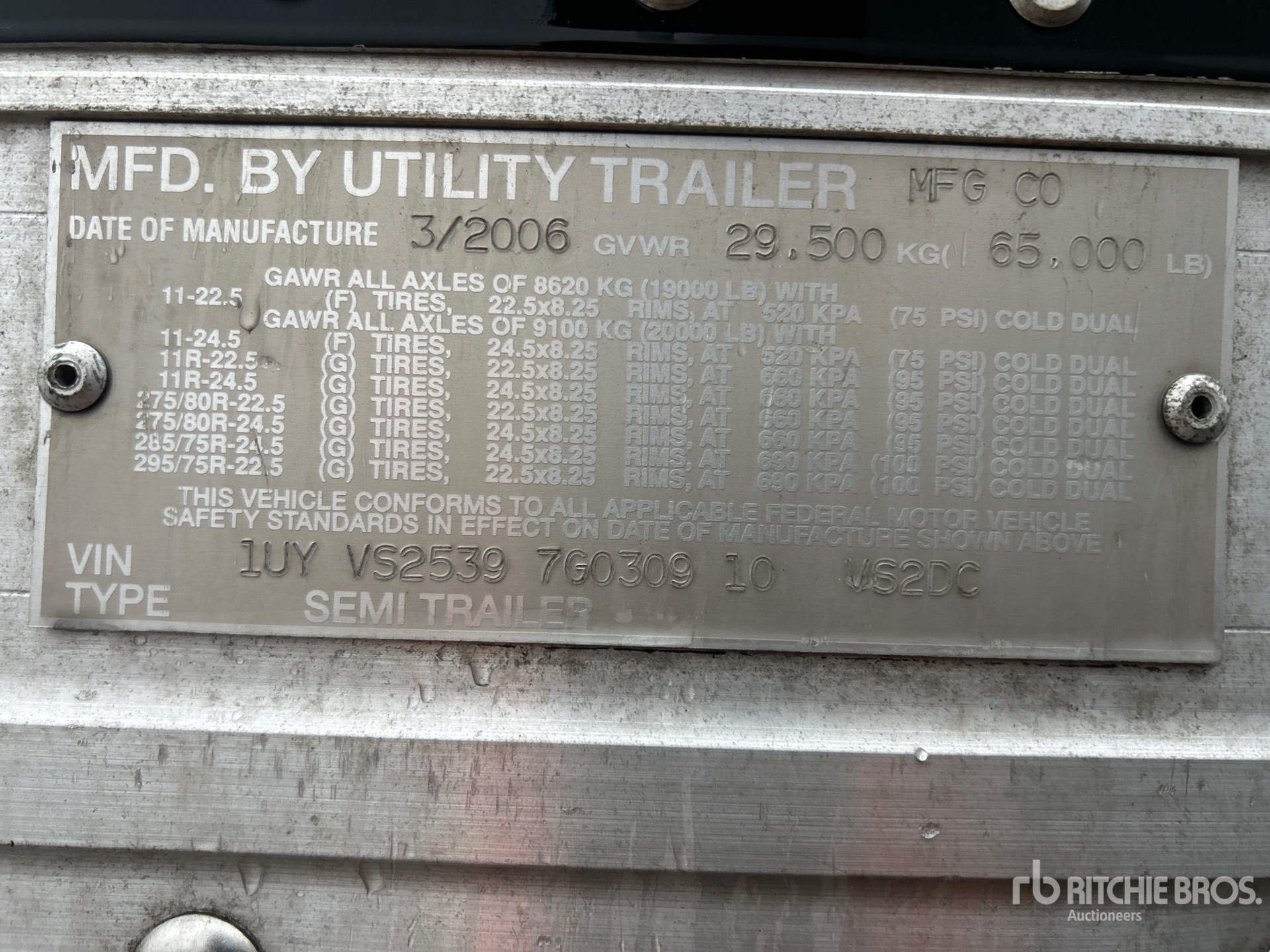 Air Ride Sliding Suspension, Hardwood Floor, Swing Door, 445/50R22.5 Super Single Tires 65000 lb GVWR