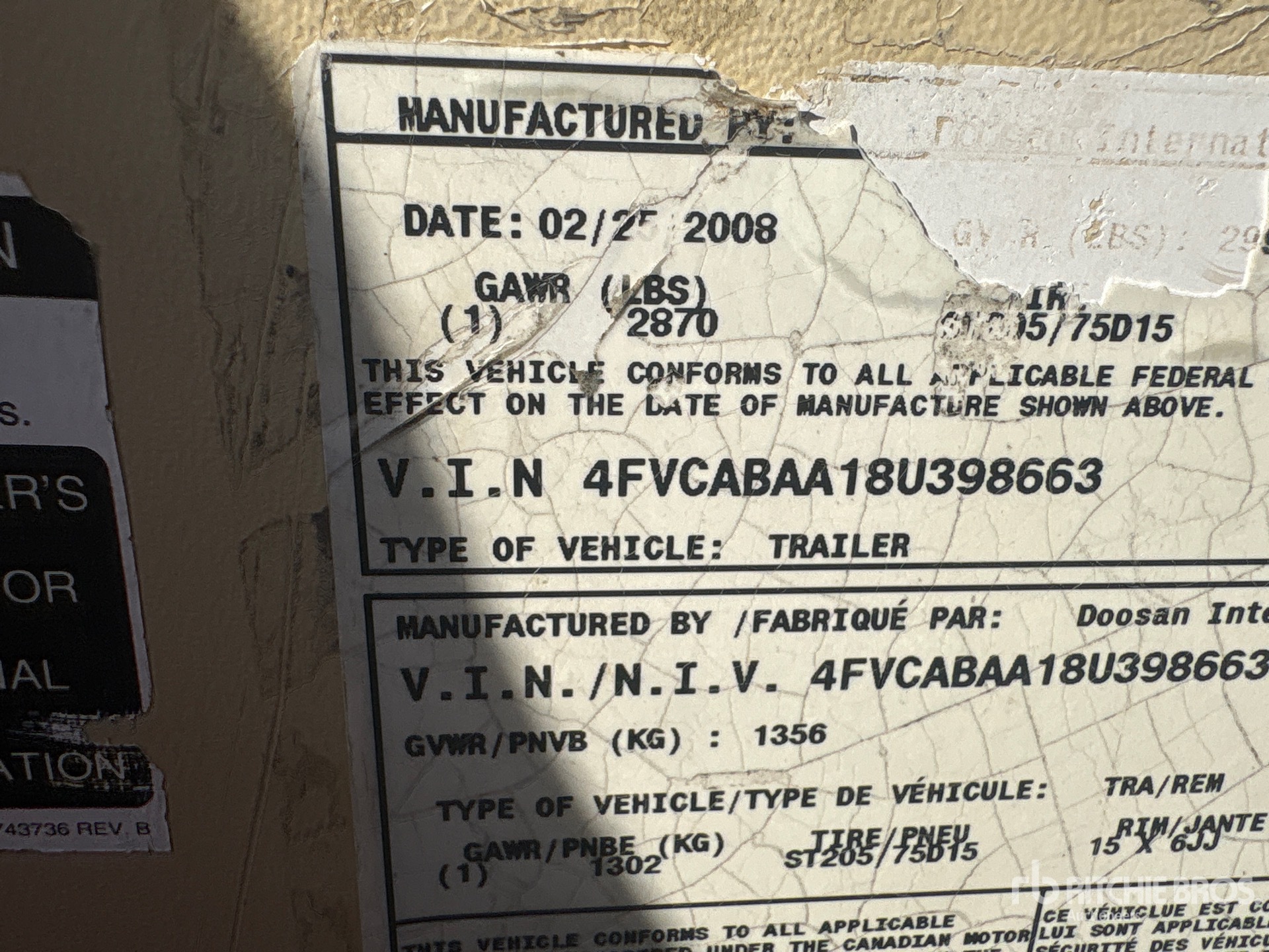 2008 US EPA Label, John Deere 4 Cylinder 2.4 L Diesel Engine, Ball Hitch Carrier Trailer