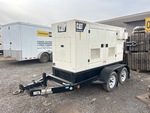 /45 kW Rated 3 Phase Output, 208 V / 480 V Rated Voltage, Sound Attenuated, Bottom Mounted Fuel Tank, Cat XQ45-6 45 kW Generator, Cat C4.4 4 Cylinder Diesel Engine, Lunette Ring Carrier Trailer, Surge Brakes, 125V, 120/208V, 250V Plug In Receptacles