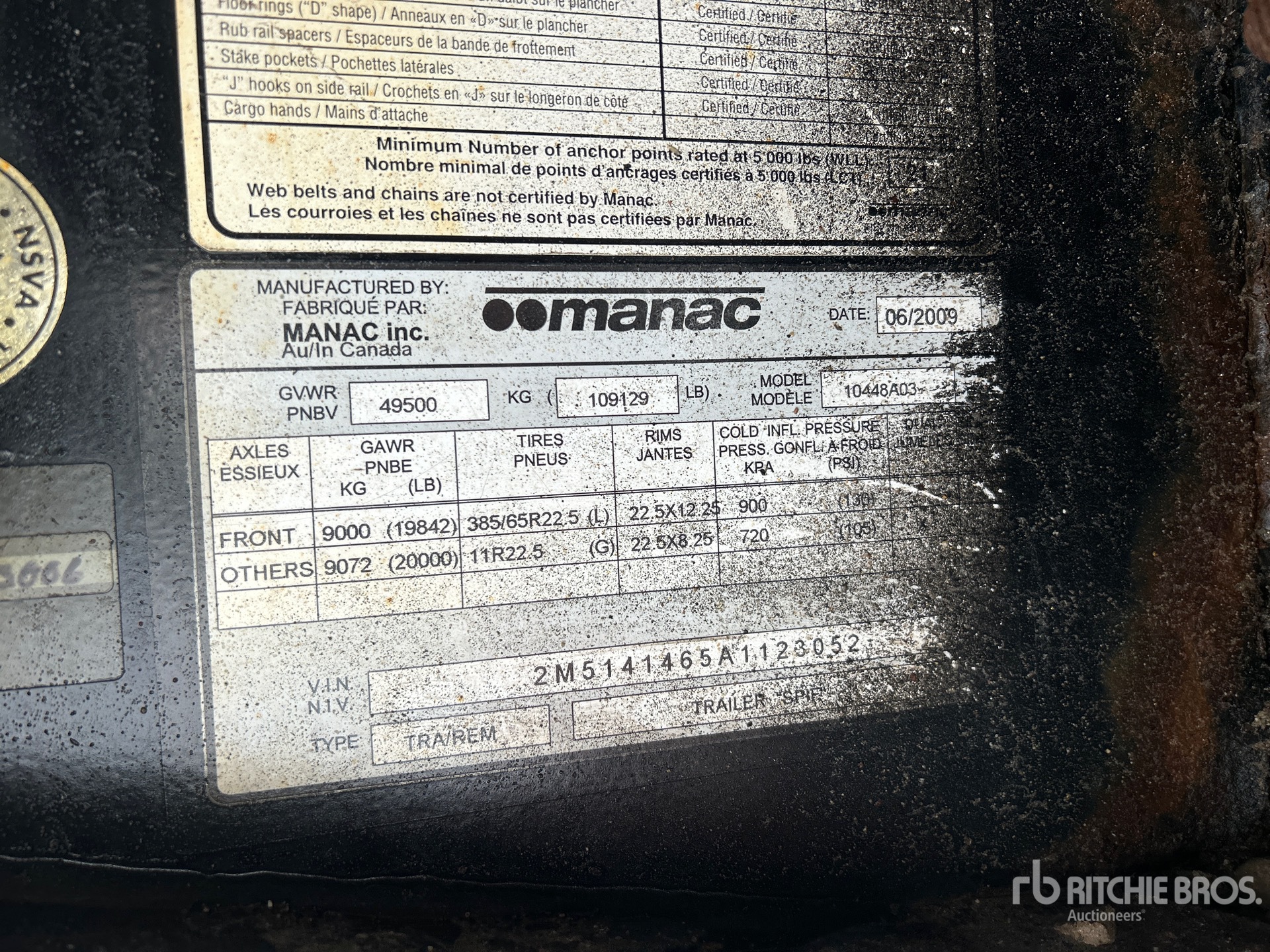 Located in Lane 25 Spot 80, Air Ride Suspension, Lift 1st- Axles, Steering 1st- Axle, 97 in Deck Width, 102 in Overall Width, Wood Flooring, 11R22.5 Tires, 109129 lb GVWR