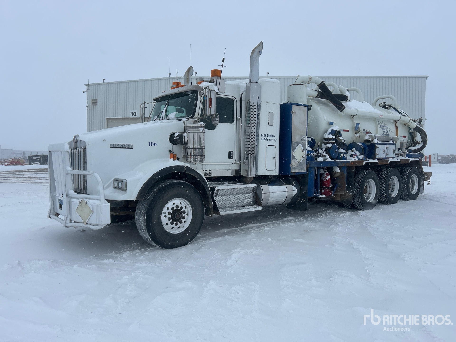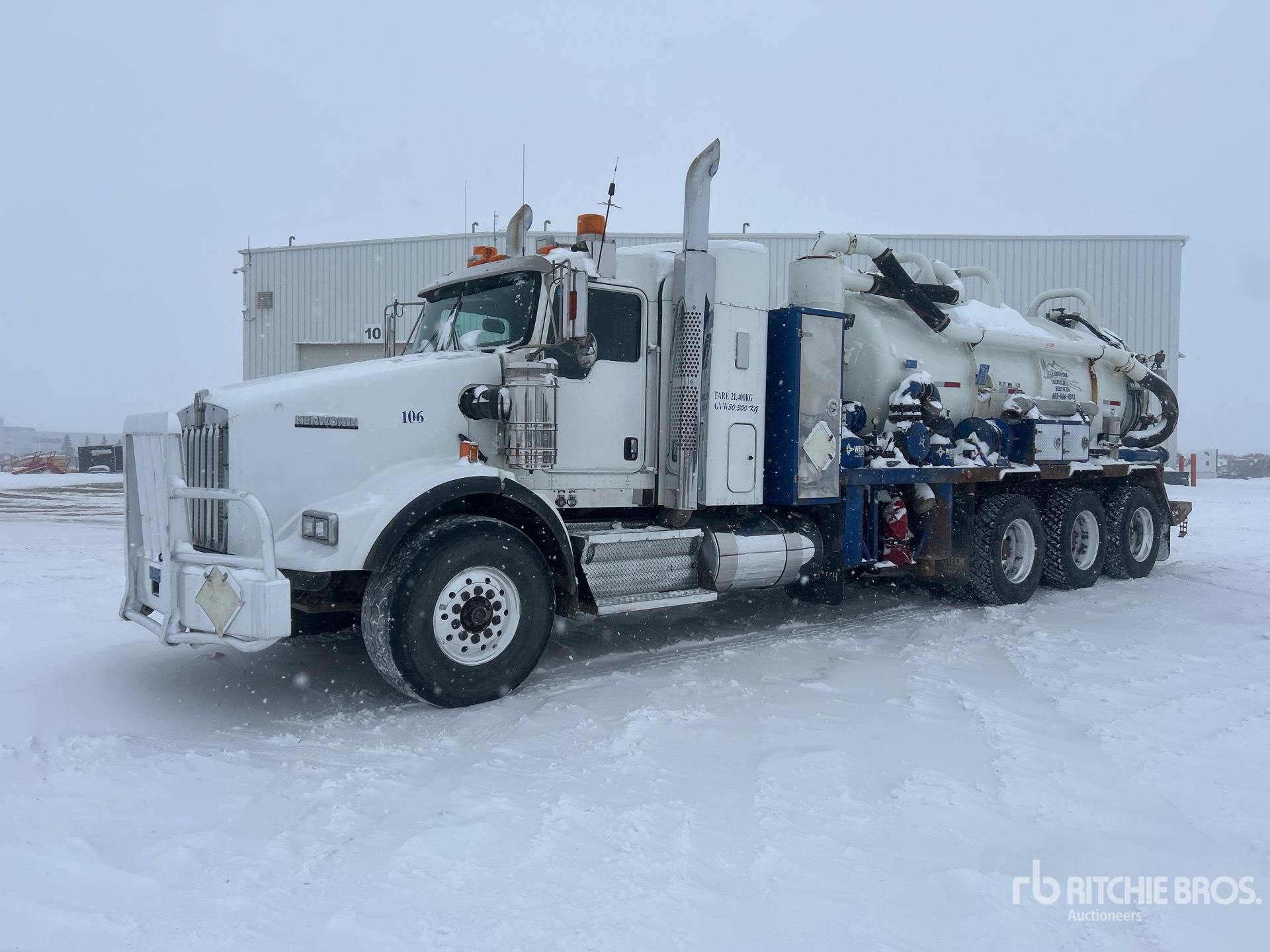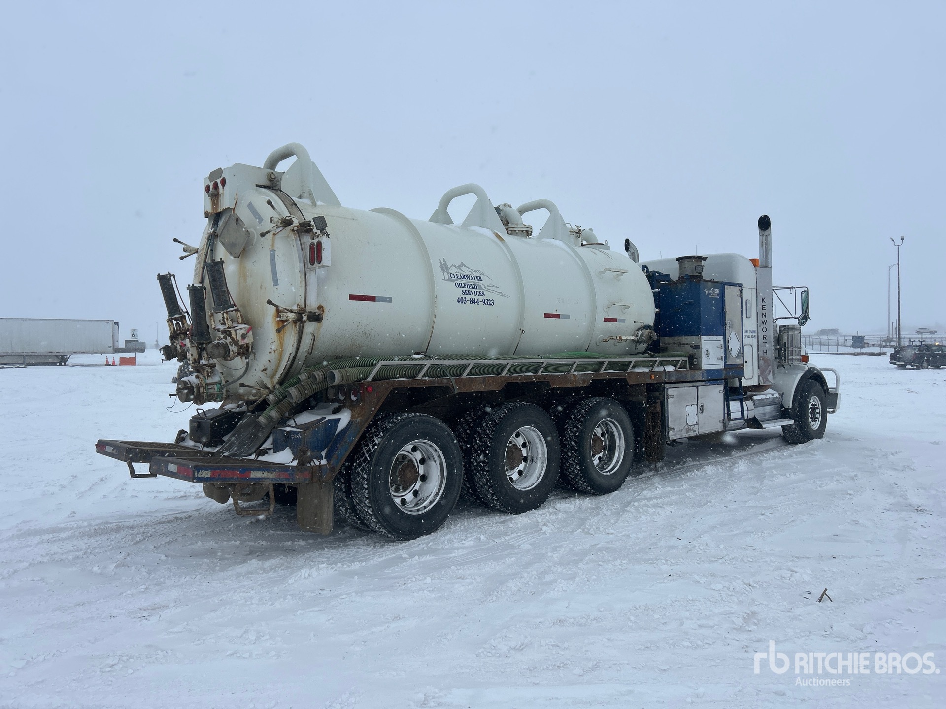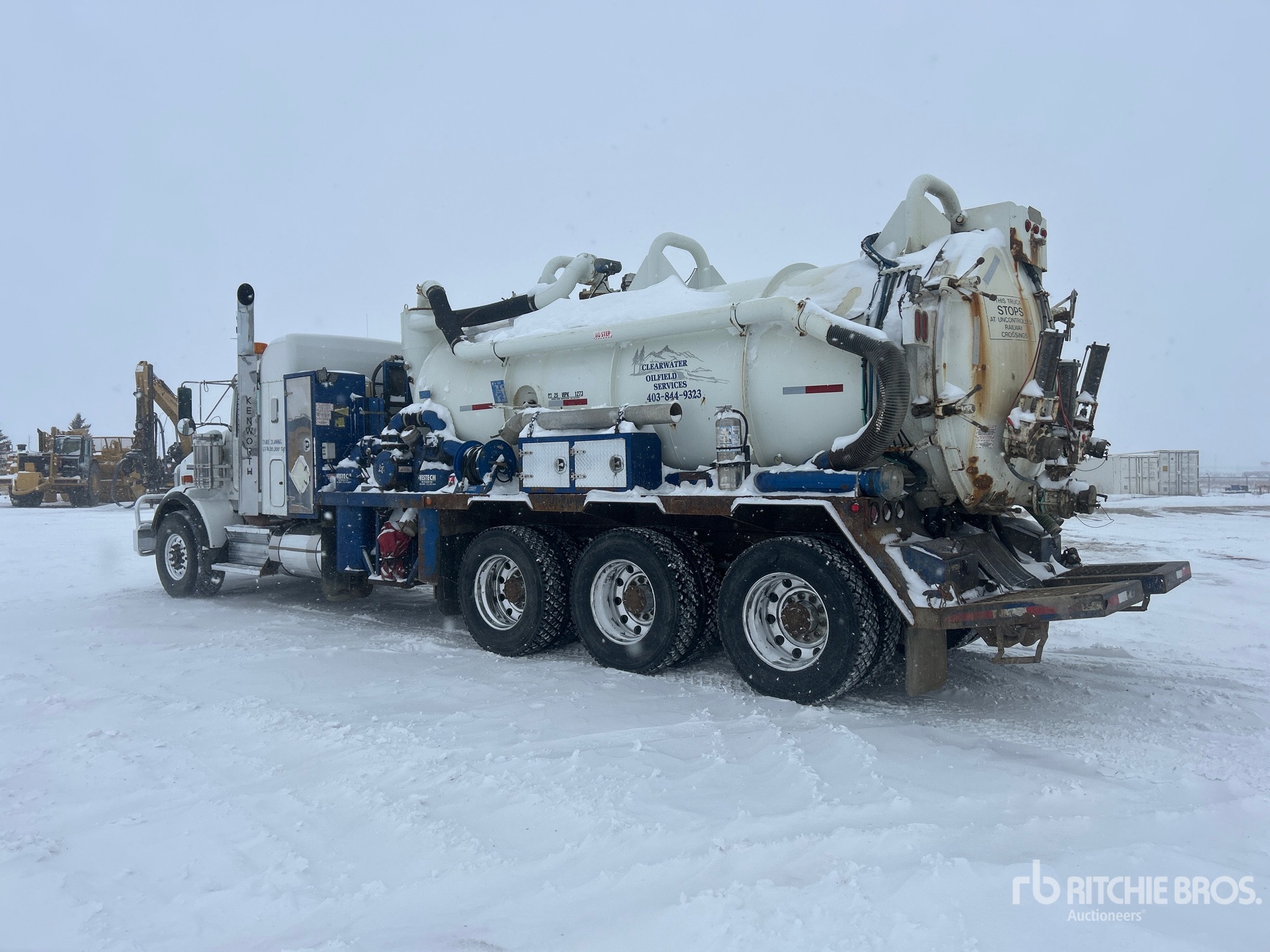 Cat C15 6 Cylinder 14.6 L Diesel 490 hp Engine, 2008 US EPA Label, 13752 Engine hrs, Engine Brake, Eaton Fuller RTLO-18918B 18-Speed Manual Transmission, Triple Differential Locks, 20000 lb Front Axle, 69000 lb Rears, Dana T69-170HP Drive Axles, 4.30:1 Axle Ratio, 78000 lb GVWR, Air Ride Cab, 28 in Mid Roof Sleeper Cab, Aluminum Wheels, 445/65R22.5 Front Tires, 11R24.5 Rear Tires, Dual Steering Boxes, Double Frame, Neway Air Ride Suspension, 292 in Wheelbase, Dual PTO, Hydraulic Oil Cooler, Steel 11455 L Debris Tank, TC407 Code, Front Hose Reel, 3000 L Fresh Water Tank, Hydraulic Lift Tailgate, Wash Down System, Manual Tailgate Locks, Cat 3517 Hydraulic Driven Pump, Hibon 820XL Blower, Emerson 750000 BTU Boiler