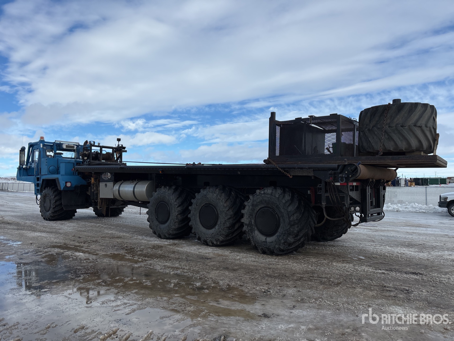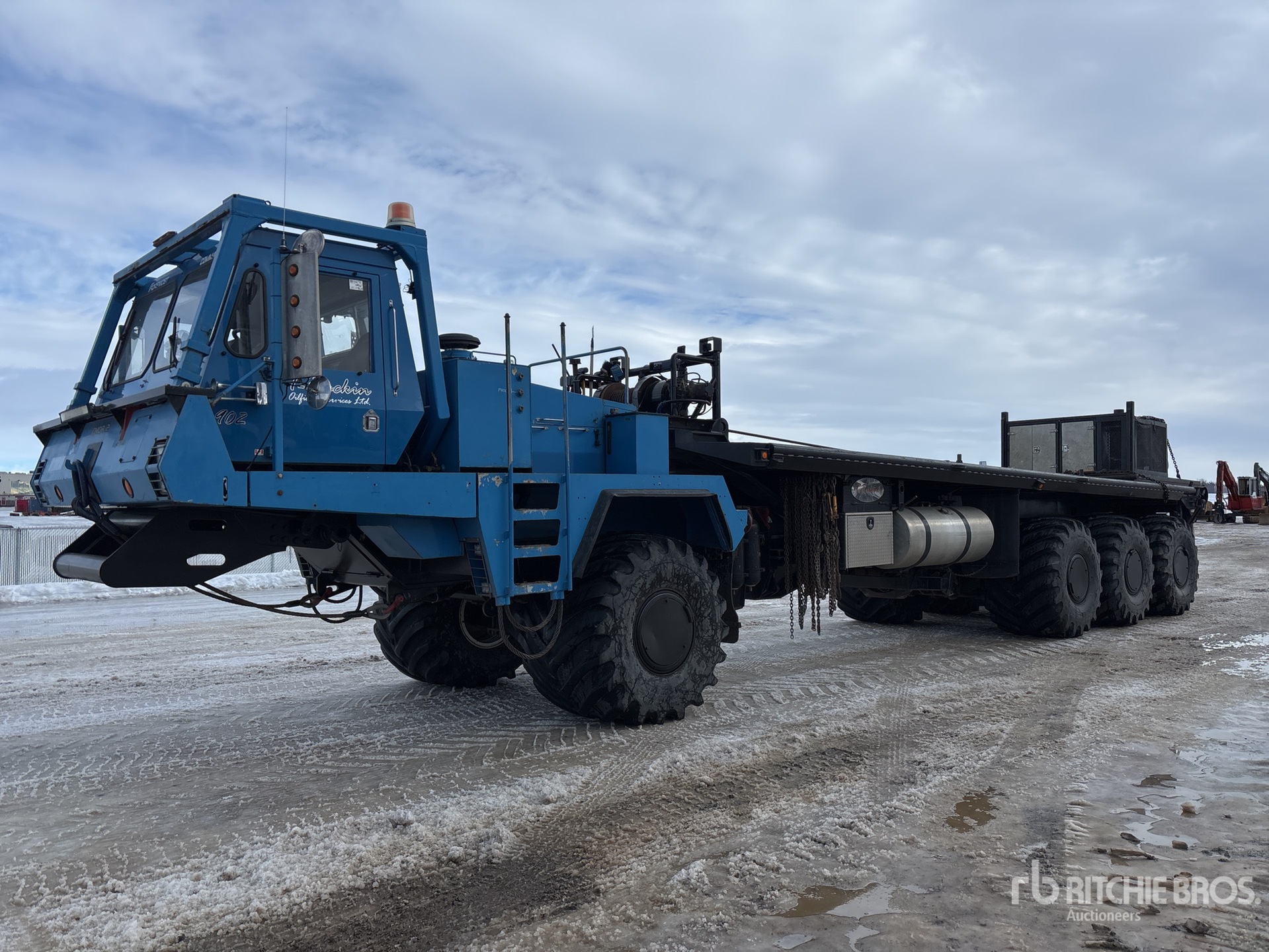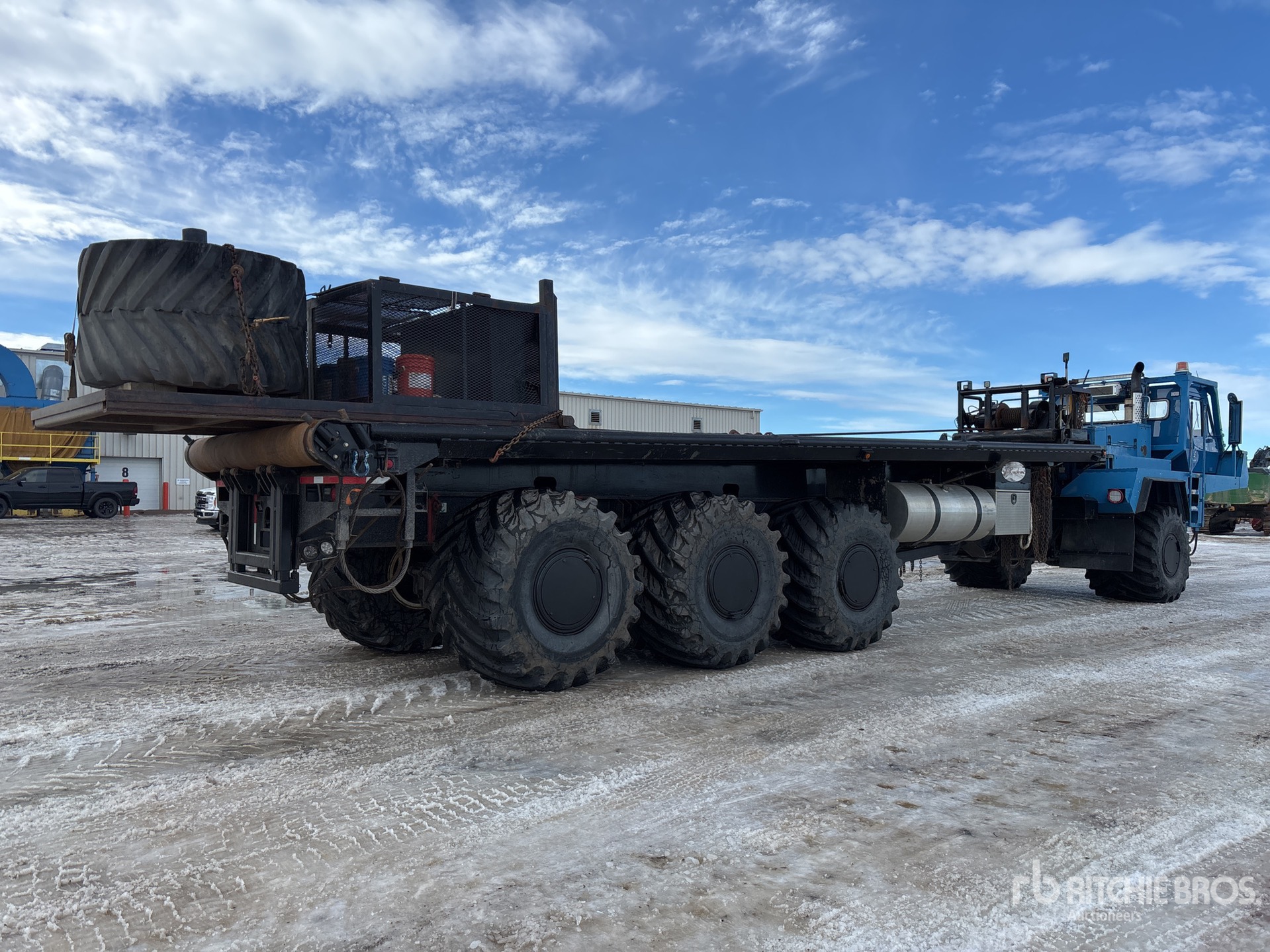 Cat 3406 6 Cylinder 14.6 L Diesel Engine, Engine Coolant Heater, Positive Air Shutoff, Engine Brake, Allison Automatic Transmission, Planetary Drive Axles, 66X43.00-25, Dual Steering Boxes, Rubber over Walking Beam Suspension, 380 in Wheelbase, PTO, 38 ft x 120 in Bed, Center Roll, Live Roll, Braden Hydraulic Winch, Complete-Dispersal-for-T-Ruckin-Oilfield-Services-Ltd