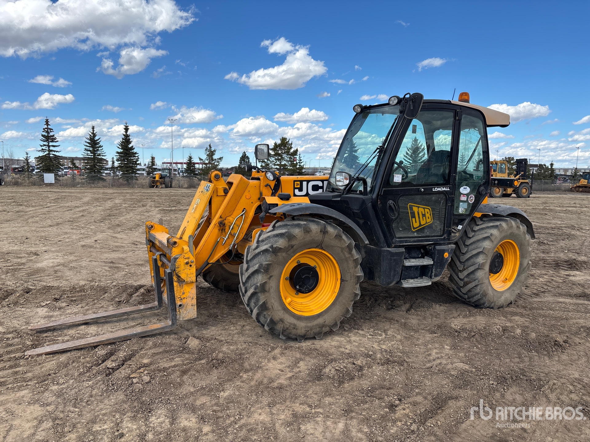 Enclosed Cab, 20 ft 6 in Max Lift Height, 7000 lb Max Lift Capacity, 2012 US EPA Label, CARB Compliant, 48 in Forks, Hydraulic Coupler, Auxiliary Hydraulic Plumbing, 460/70R24 Tires