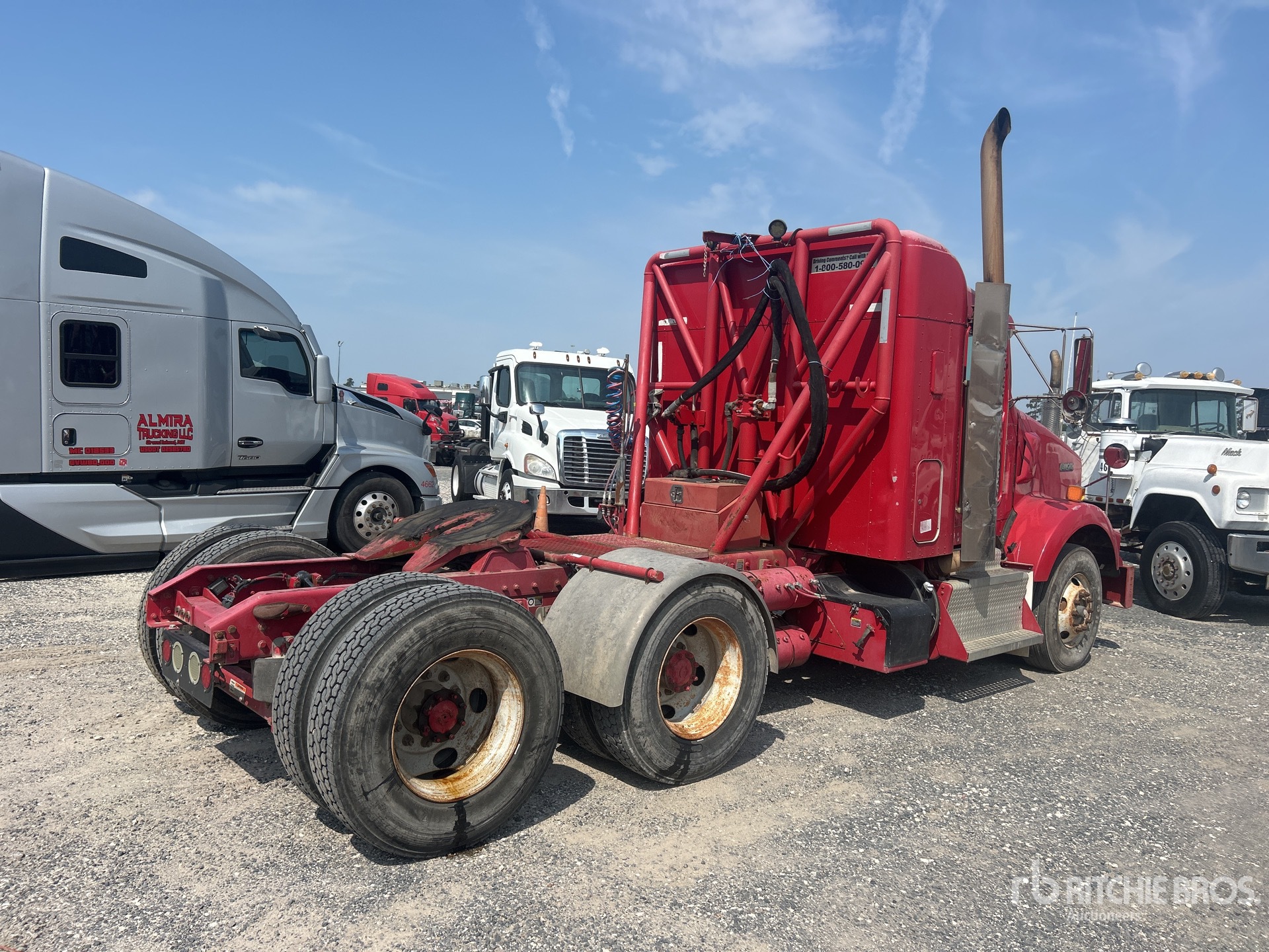 Cummins ISX 350 hp Engine, 2011 US EPA Label, Eaton Fuller 10-Speed Manual Transmission, 12000 lb Front Axle, 44000 lb Rears, 56000 lb GVWR, Engine Brake, Double Differential Locks, 24 in Mid Roof Sleeper Cab, 201 in Wheelbase, Air Suspension, 11R22.5, Wet Kit, Headache Rack