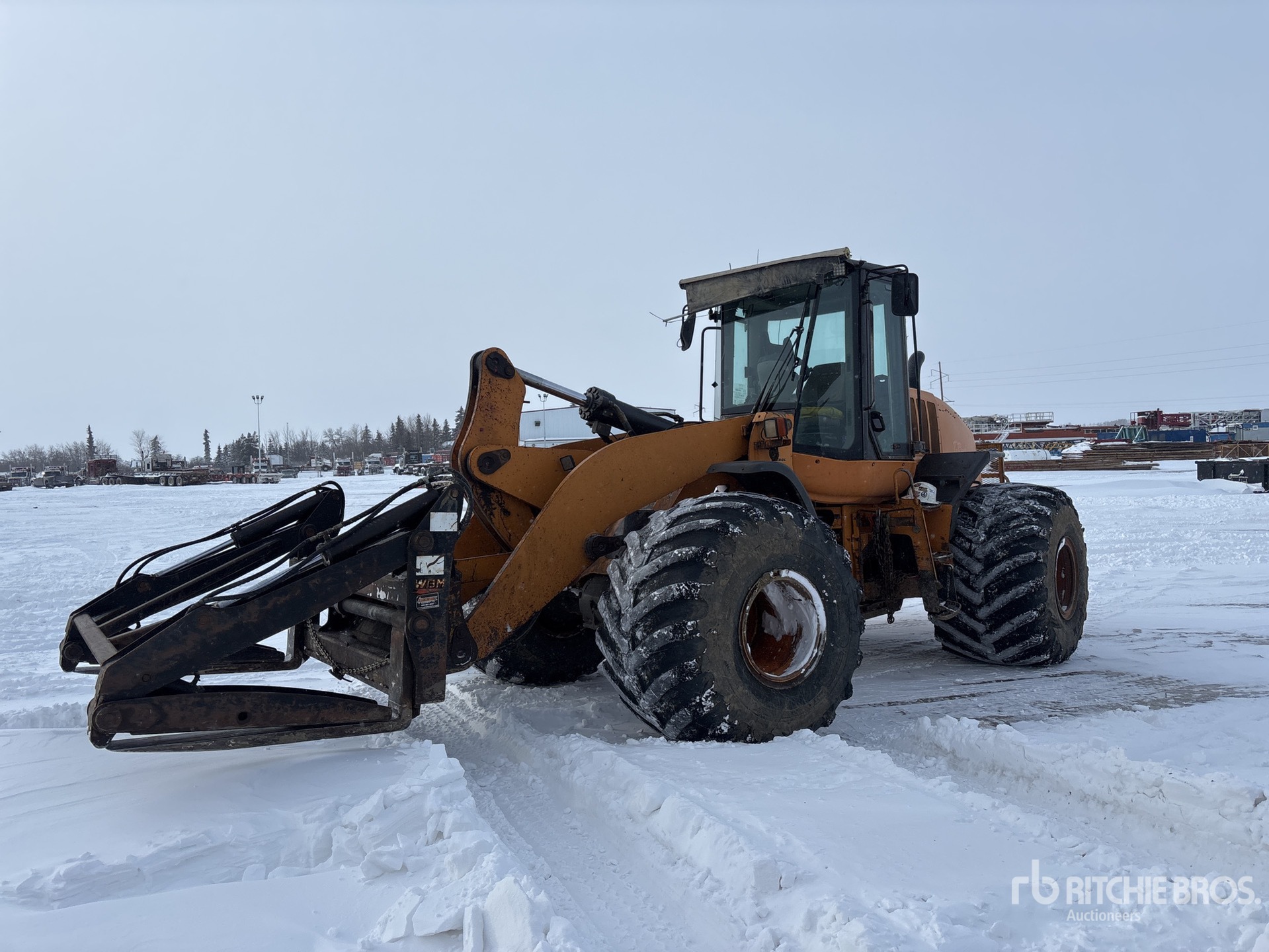 Enclosed Cab, Air Conditioner, Ride Control, Autoshift, Positive Air Shutoff, Auxiliary Hydraulics, Hydraulic Coupler, Pipe Grapple, 66x43.00-25 Tires, Complete-Dispersal-for-T-Ruckin-Oilfield-Services-Ltd