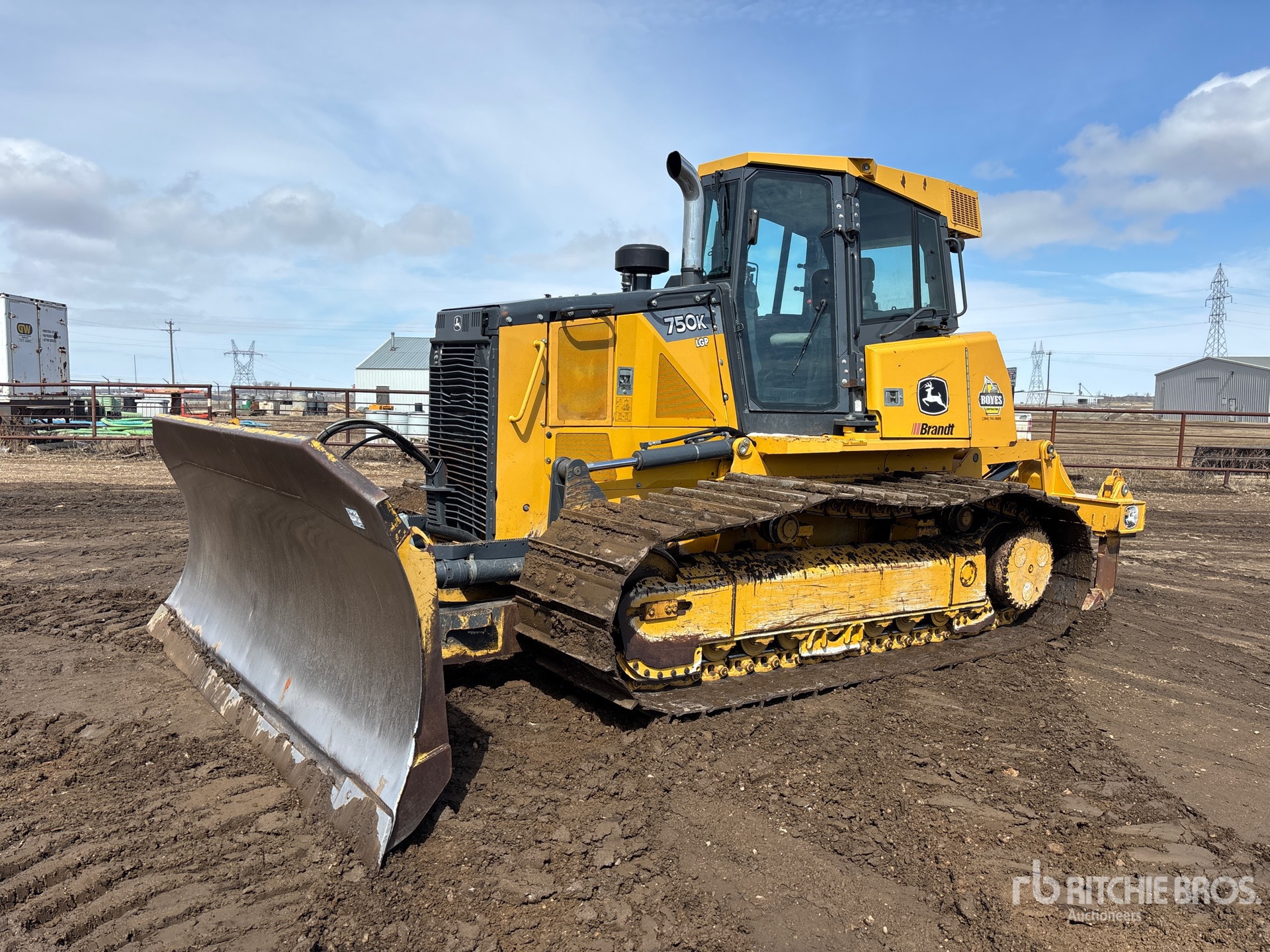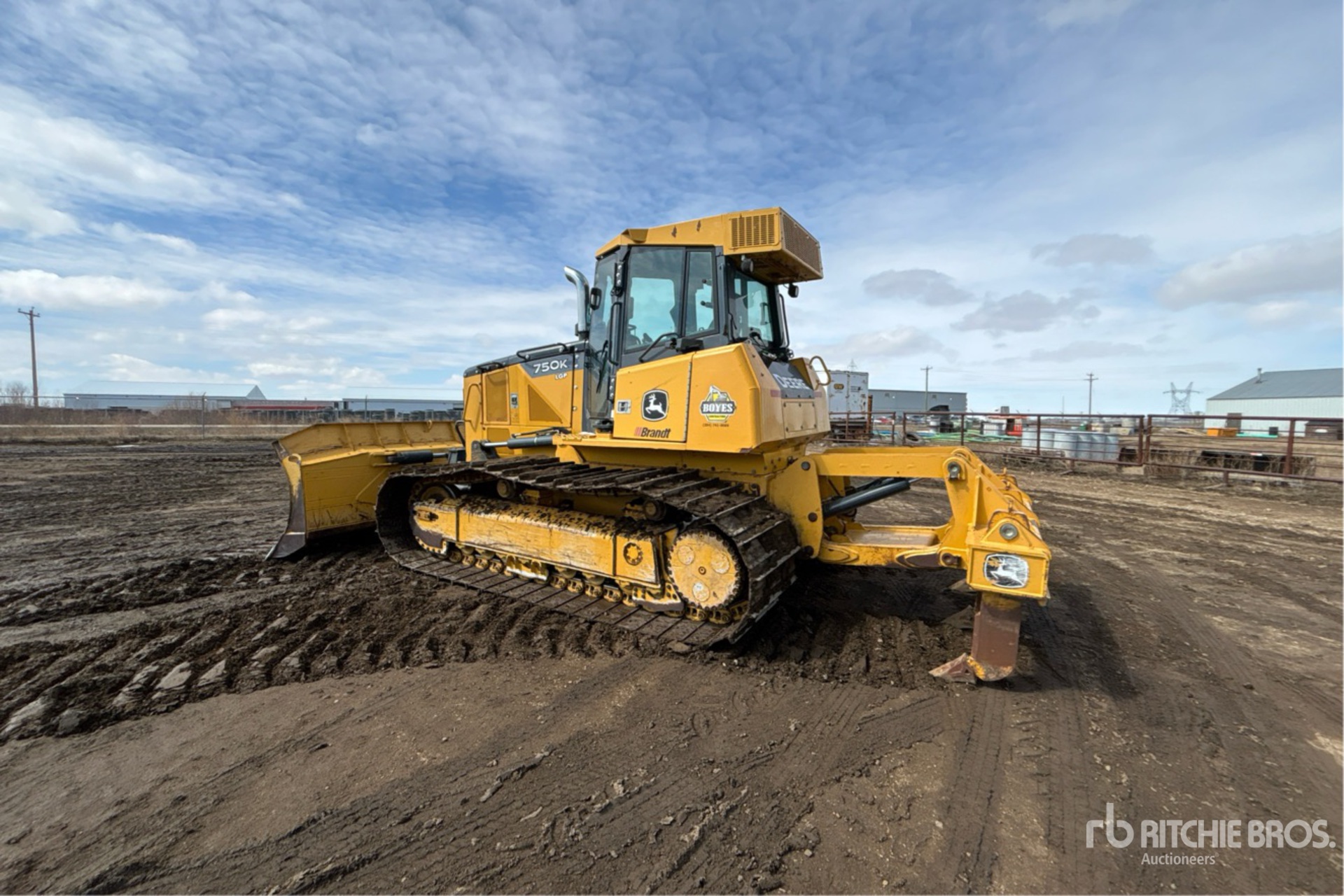 Located in Lane 4 Spot 10, Enclosed Cab, Air Conditioner, 2013 US EPA Label, CARB Compliant, 156 in Wide PAT Blade, 34 in Single Grouser Track Shoes, 2 Cylinder Multi-Shank Ripper, Complete-Dispersal-for-Boyes-Contracting