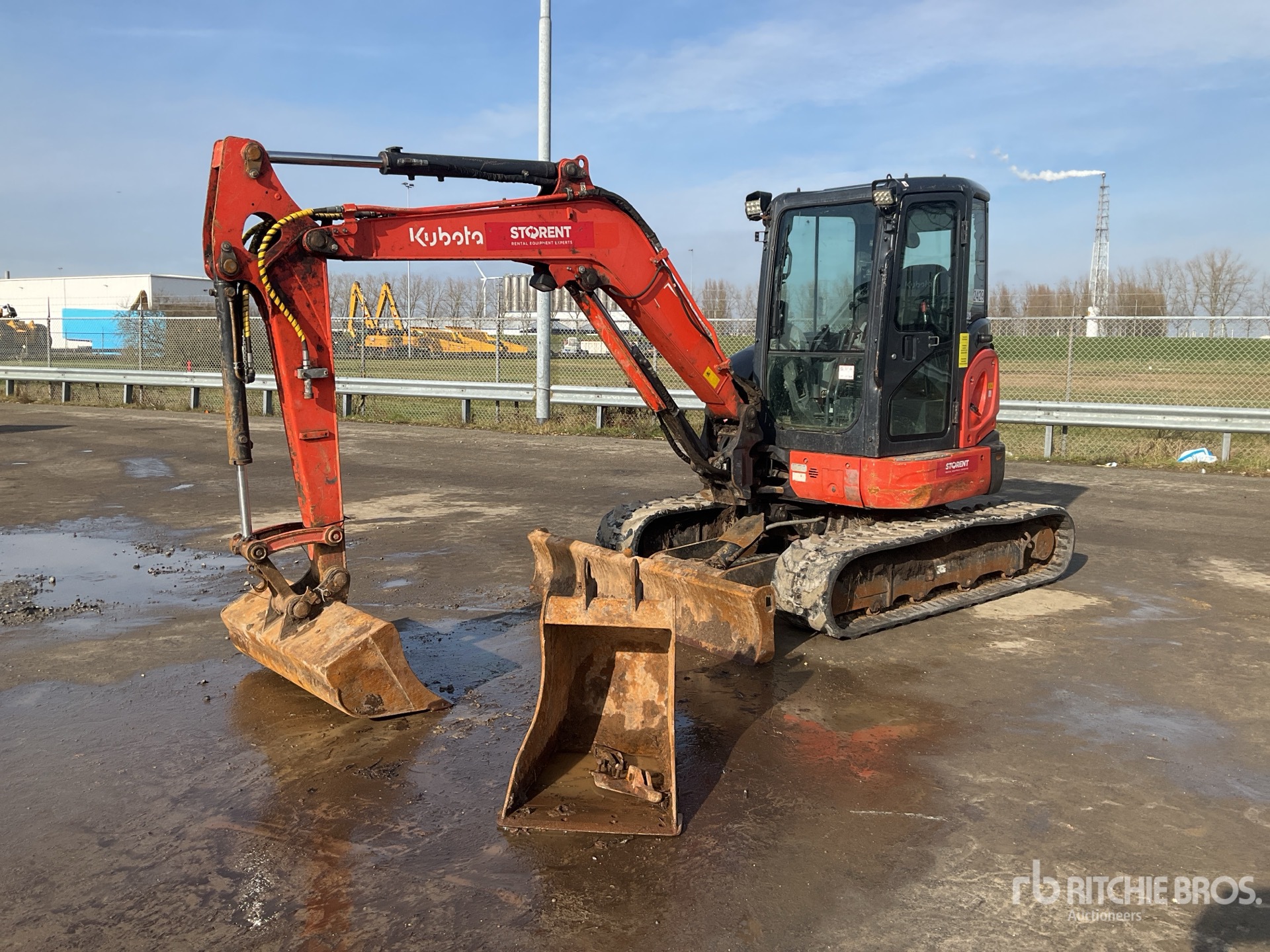 Enclosed Cab, Swing Boom, 1450 mm Stick, Auxiliary Hydraulic Plumbing, Backfill Blade, 400 mm Rubber Tracks, 1140 mm Cleanup Bucket, Additional 550 mm Digging Bucket