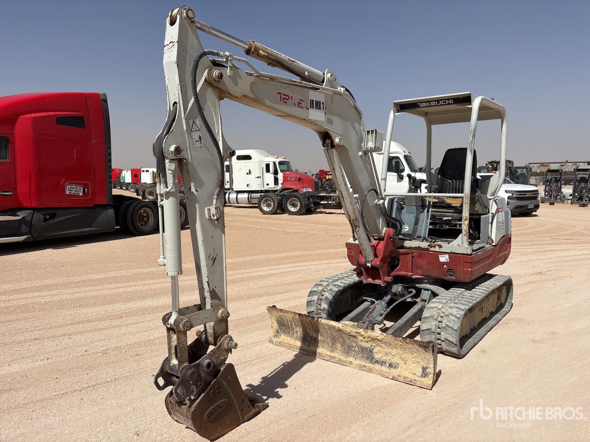 Swing Boom, 5 ft 3 in Stick, Auxiliary Hydraulic Plumbing, Stick Check Valve, Backfill Blade, 13.5 in Rubber Tracks, Manual Quick Coupler, 10 in Digging Bucket, Thumb Bracket