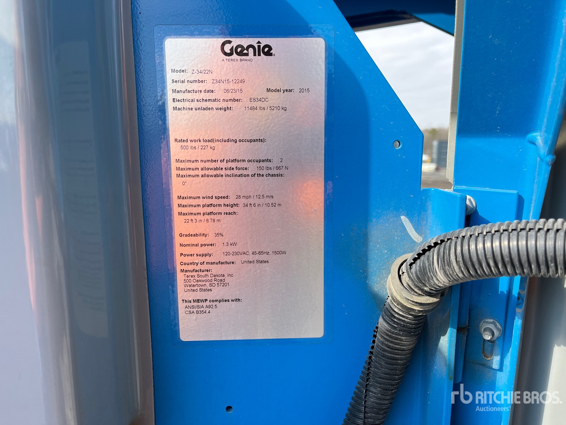 34 ft 6 in Max Platform Height, 500 lb Max Weight Capacity, Jib, Power to Platform