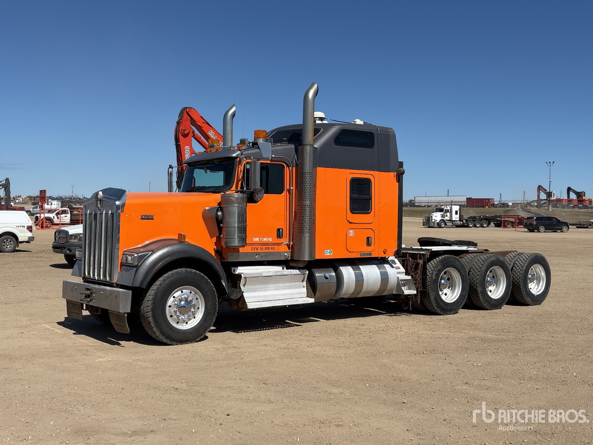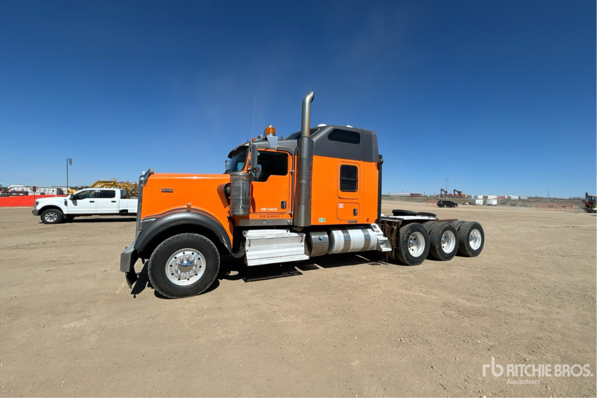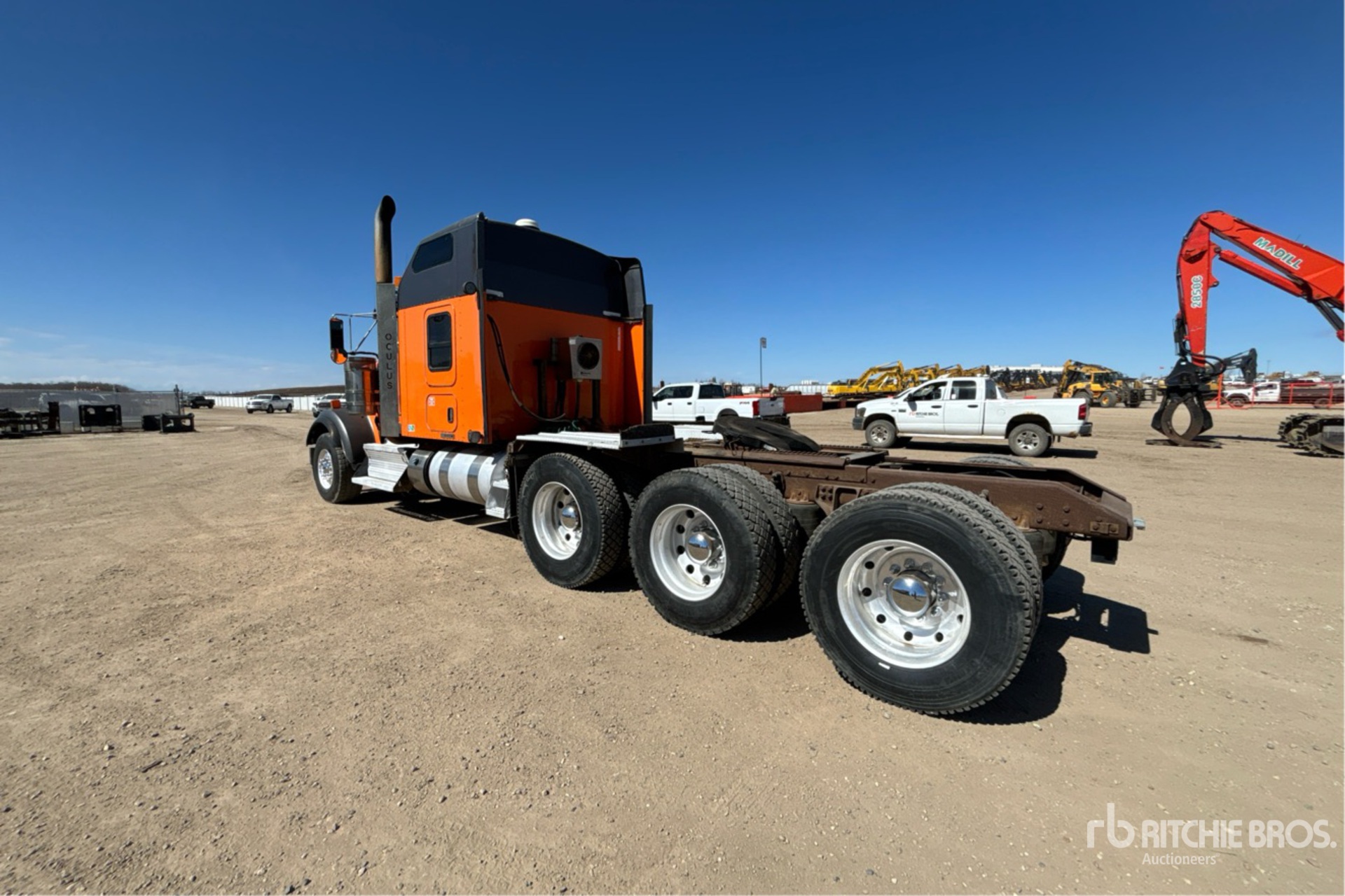 Paccar MX-13 500 hp Engine, Positive Air Shutoff, Eaton Fuller RTLO-18918B 18-Speed Manual, 16000 lb Front Axle, 60000 lb Rears, 76000 lb GVWR, Engine Brake, 72 in High Rise Sleeper Cab, 268 in Wheelbase, Air Suspension, Aluminum Wheels, 385/65R22.5 Front Tires, 11R24.5 Rear Tires, Dual Steering Boxes, Double Frame, Wet Kit, Air Sliding 5th Wheel, Dual Fuel Tanks