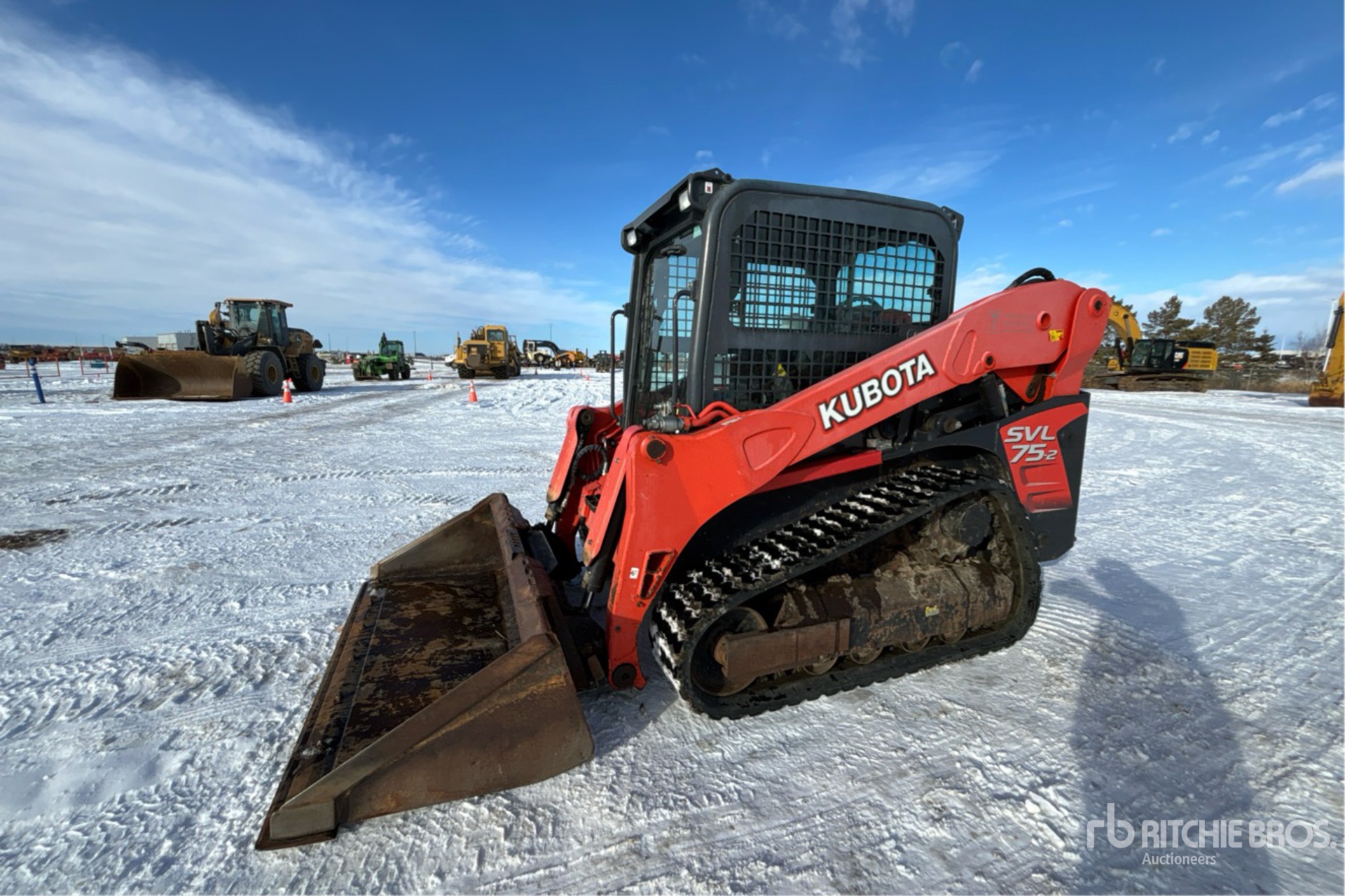 Enclosed Cab, Air Conditioner, Joystick Steering, 12.5 in Track Belts, Hydraulic Coupler, 72 in Bucket