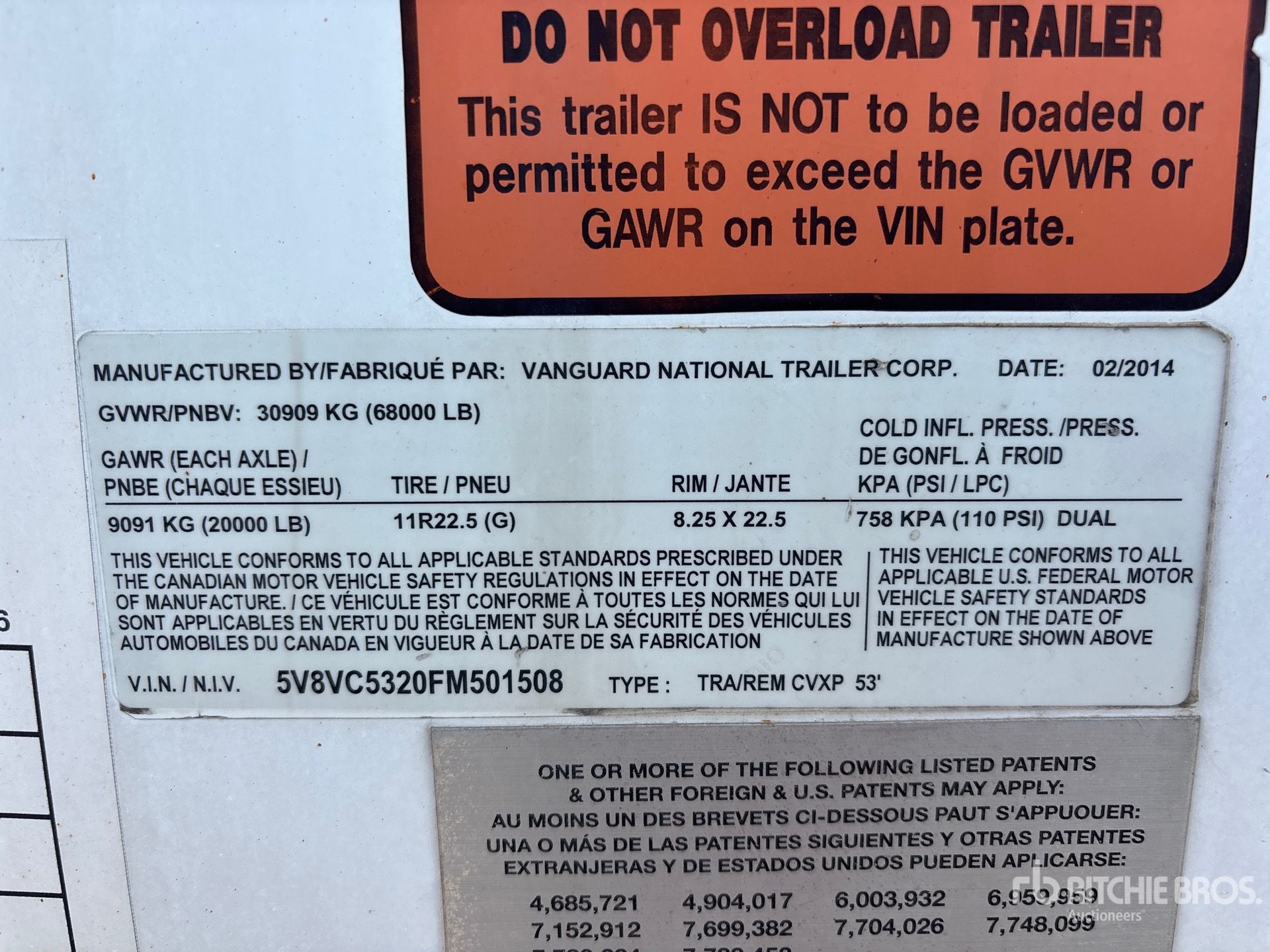 Air Ride Sliding Suspension, Hardwood Floor, Swing Door, 11R22.5 Tires, 68000 lb GVWR