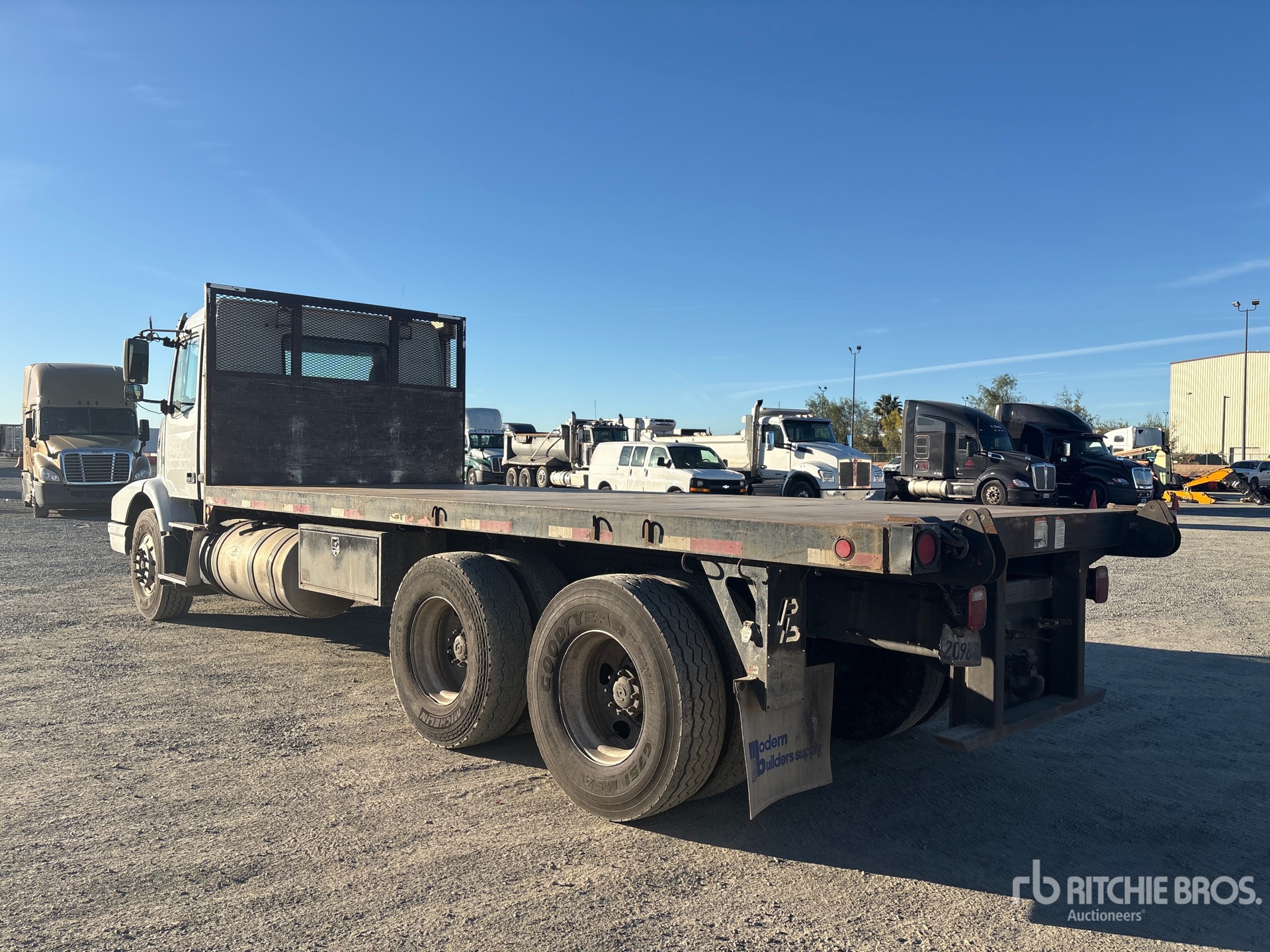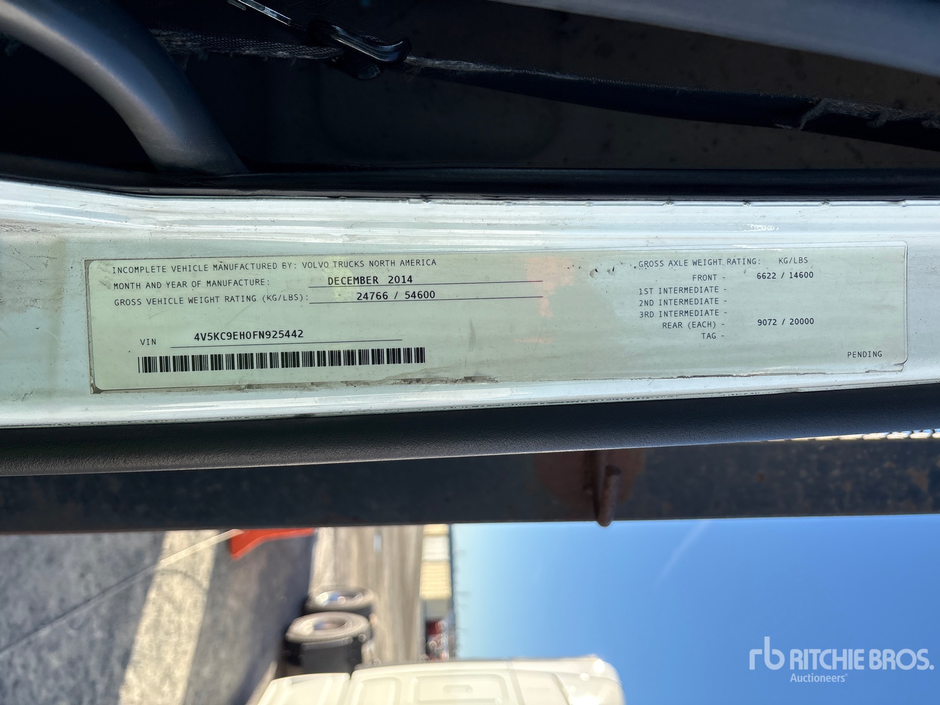 Volvo D13J425 6 Cylinder 12.8 L Diesel 425 hp Engine, 2014 US EPA Label, Requires Diesel Exhaust Fluid, 14241 Engine hrs, Eaton Fuller RTLO-16918B 18-Speed Manual Transmission, 14600 lb Front Axle, 40000 lb Rears, Meritor MT-40-14X Drive Axles, 3.90:1 Axle Ratio, 54600 lb GVWR, 315/80R22.5, Spring Suspension, 236 in Wheelbase, 21 ft x 96 in Bed