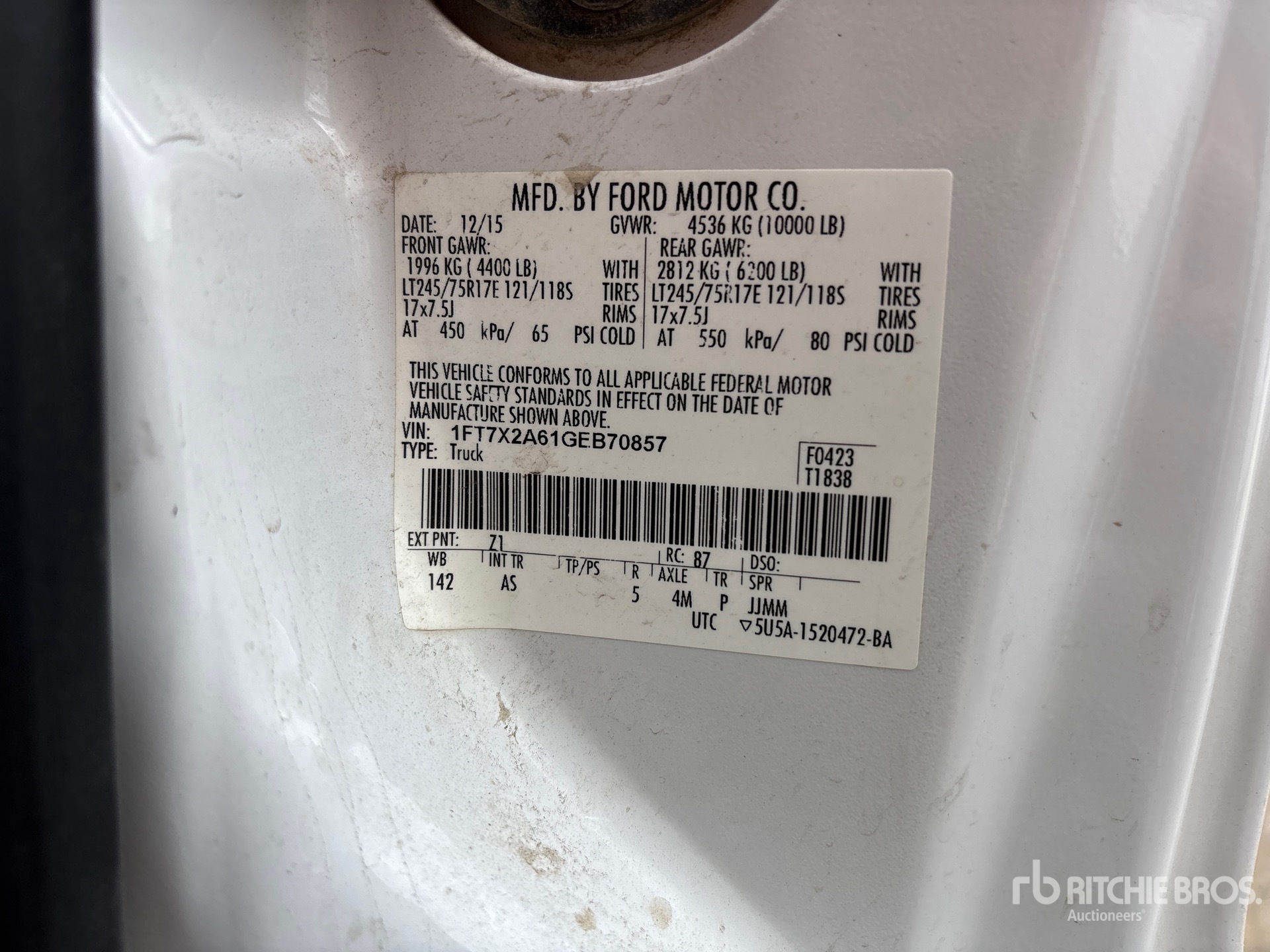 Ford V8 6.2 L Gasoline Engine, 2016 US EPA Label, Automatic Transmission, 4400 lb Front Axle, 6200 lb Rears, 10000 lb GVWR, 245/75R17, Spring Suspension, 142 in Wheelbase, 7 ft x 84 in Bed