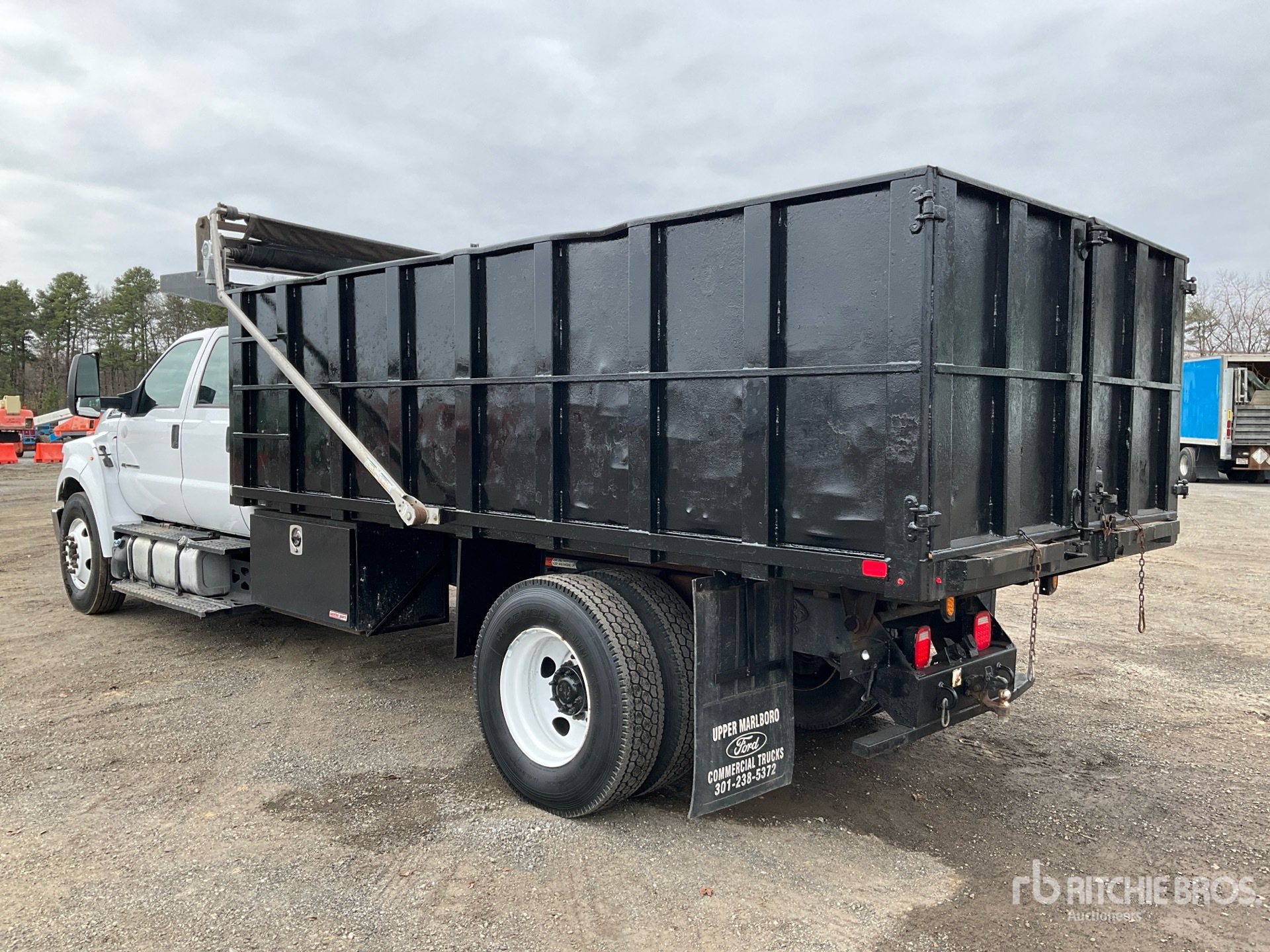 Ford Power Stroke V8 6.7 L Diesel Engine, 2016 US EPA Label, Requires Diesel Exhaust Fluid, Automatic Transmission, 10000 lb Front Axle, 21000 lb Rears, 25999 lb GVWR, 11R22.5, Spring Suspension, 236 in Wheelbase, PTO, Wet Kit, 15 ft Long x 4 ft High Steel Body, Electric Roll Tarp, Split Swing Tailgate, Pintle Hitch