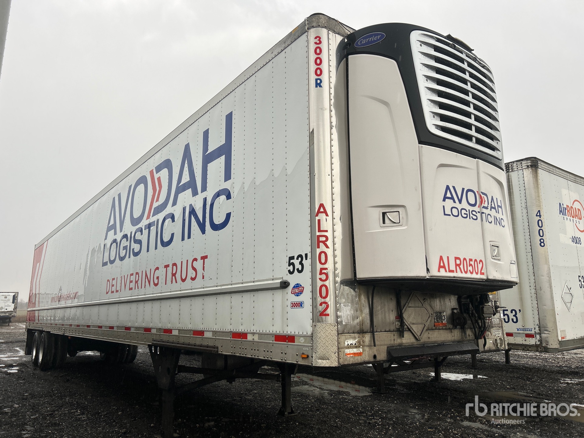 Carrier Refrigeration Unit, Air Ride Sliding Suspension, Ducted Floor, Swing Door, 11R22.5 Tires, 65000 lb GVWR