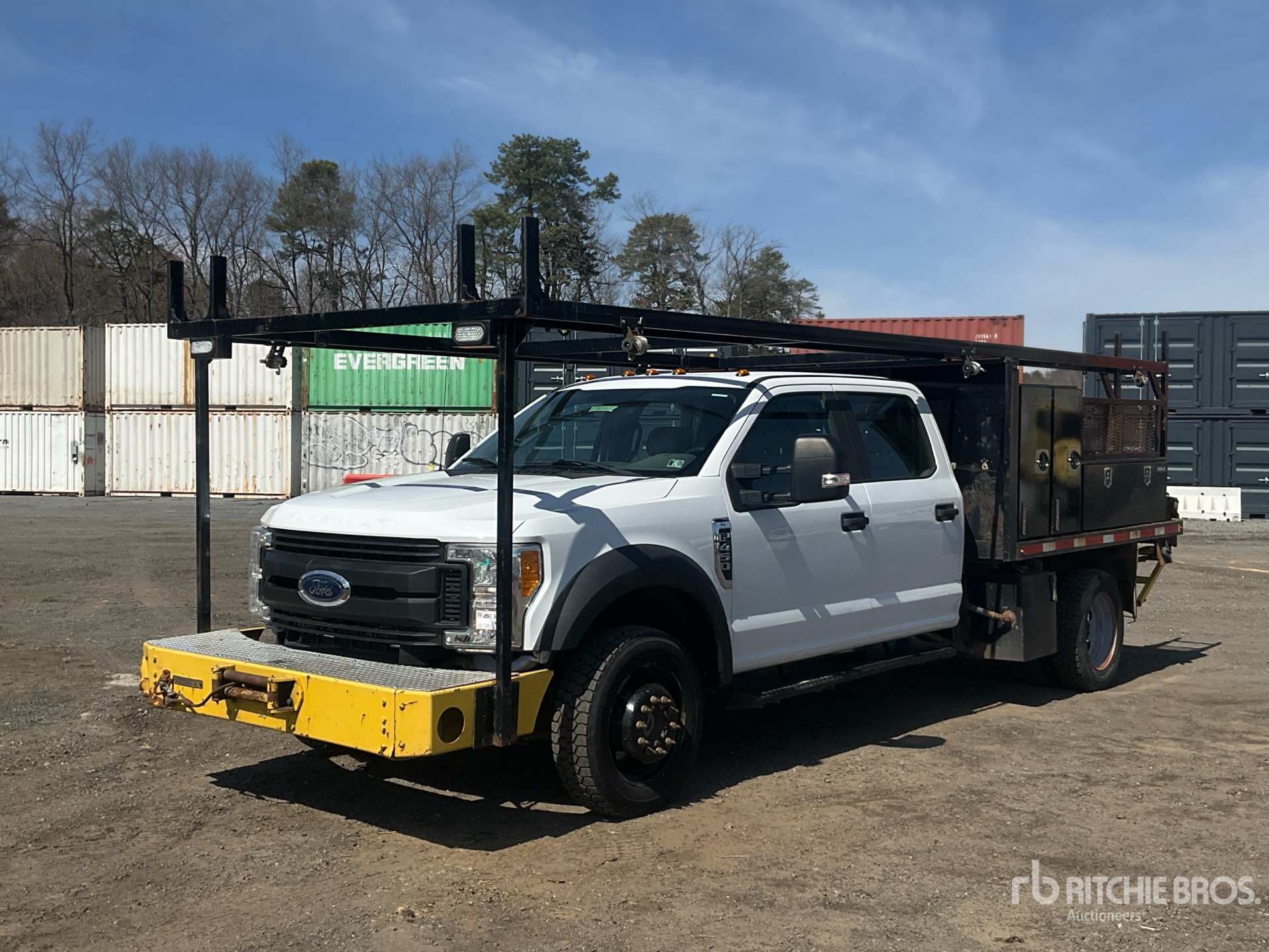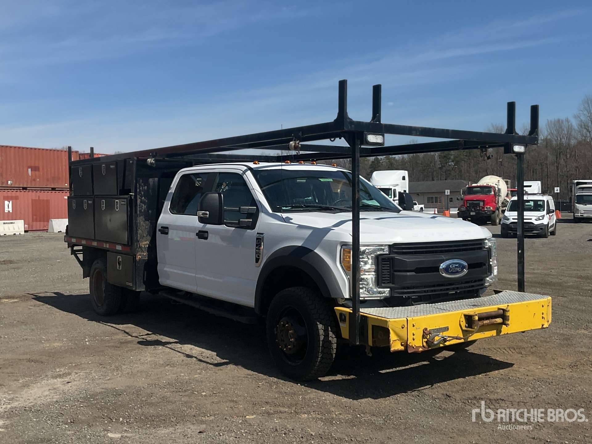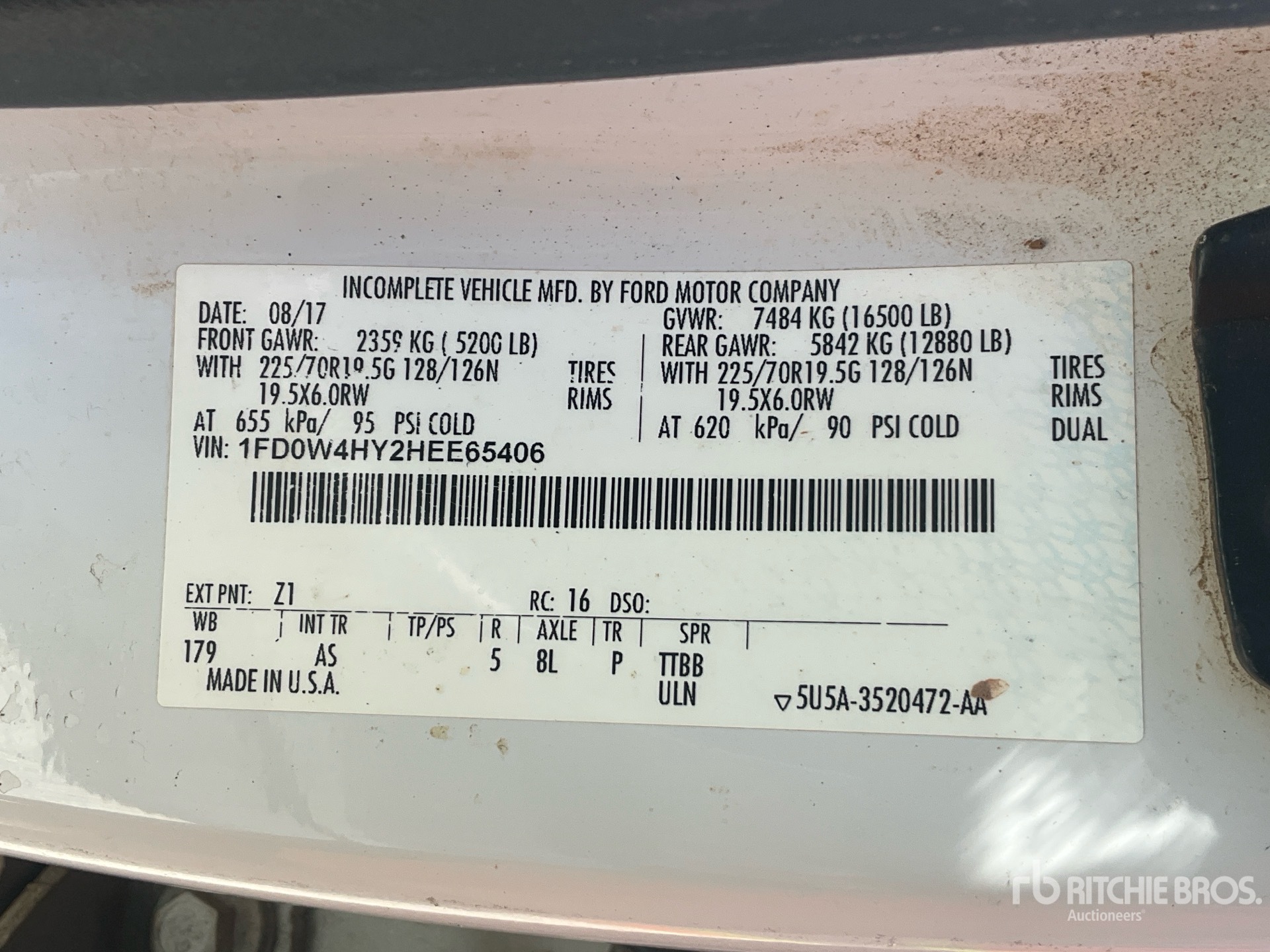 Located in Lane 46 Spot 1, Ford V10 6.8 L Gasoline Engine, 2017 US EPA Label, 4826 Engine hrs, Automatic Transmission, 5200 lb Front Axle, 12880 lb Rears, 16500 lb GVWR, 225/70R19.5, Spring Suspension, 179 in Wheelbase, PTO, 9 ft 4 in x 96 in Bed, Winch, Weather Guard Fuel Tank /w Pump, Rearview Camera