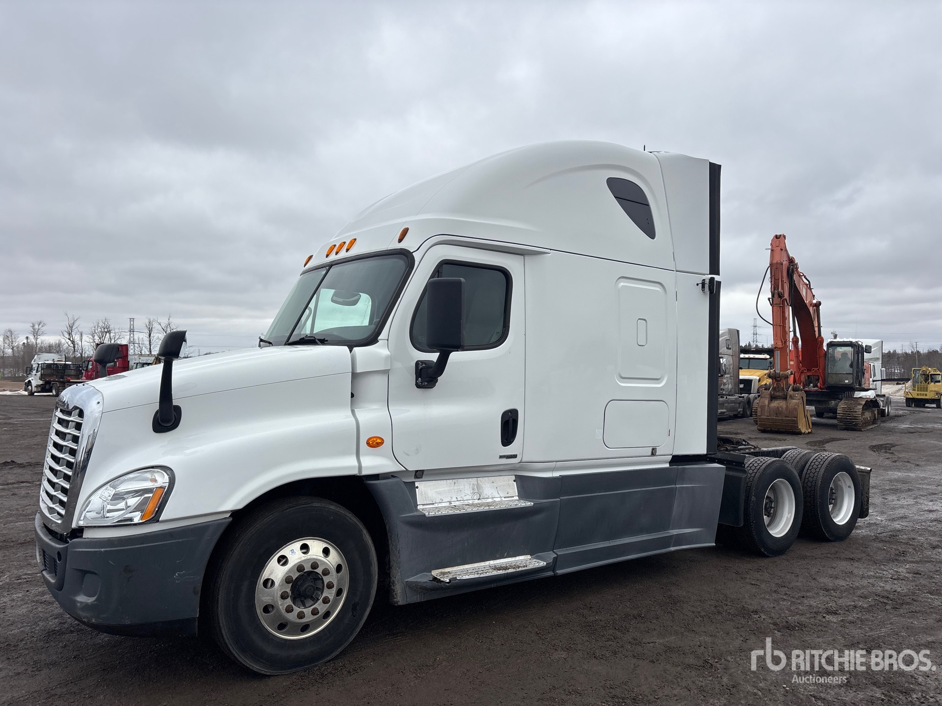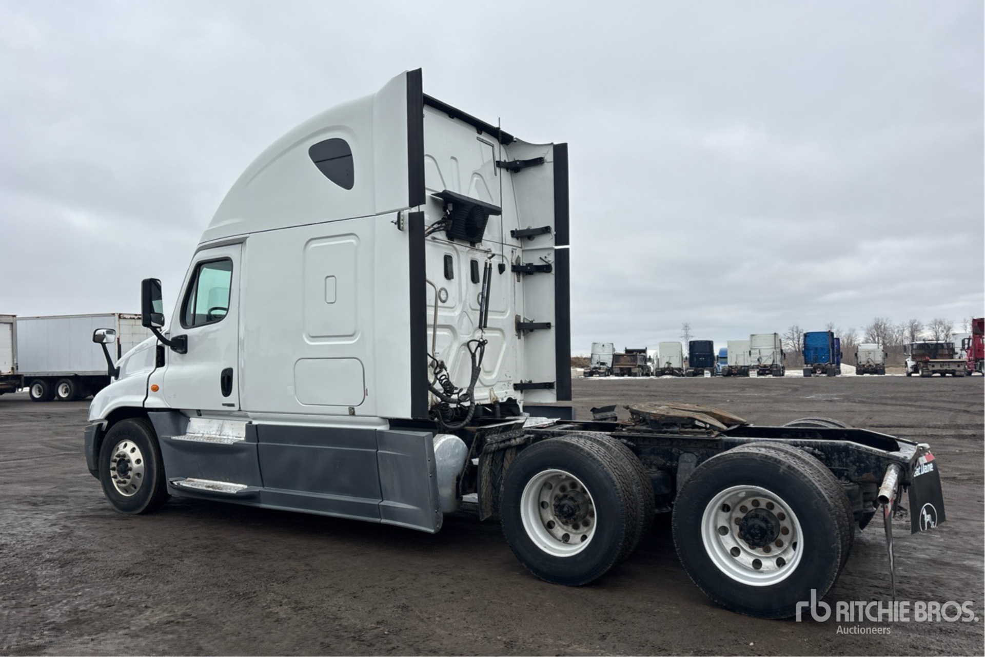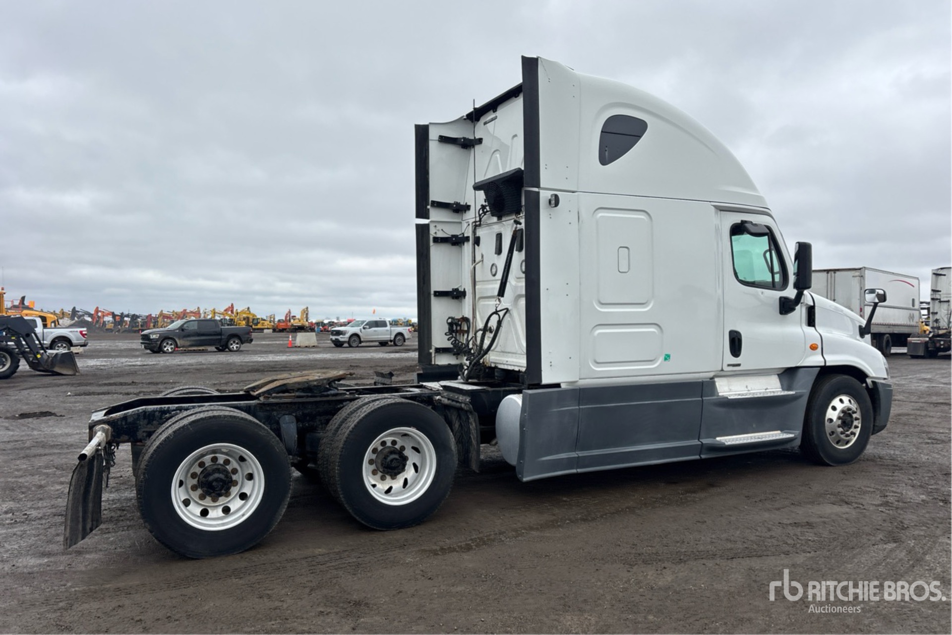 Detroit DD15 455 hp Engine, 22686 Engine hrs, Detroit DT12-DA-1750 12-Speed Automated Transmission, 13220 lb Front Axle, 40000 lb Rears, 53220 lb GVWR, Engine Brake, Differential Lock, 70 in High Rise Sleeper Cab, Bunk Beds, 228 in Wheelbase, Air Suspension, Aluminum Wheels, 11R22.5 Front Tires, 295/75R22.5 Rear Tires, Air Sliding 5th Wheel, Dual Fuel Tanks