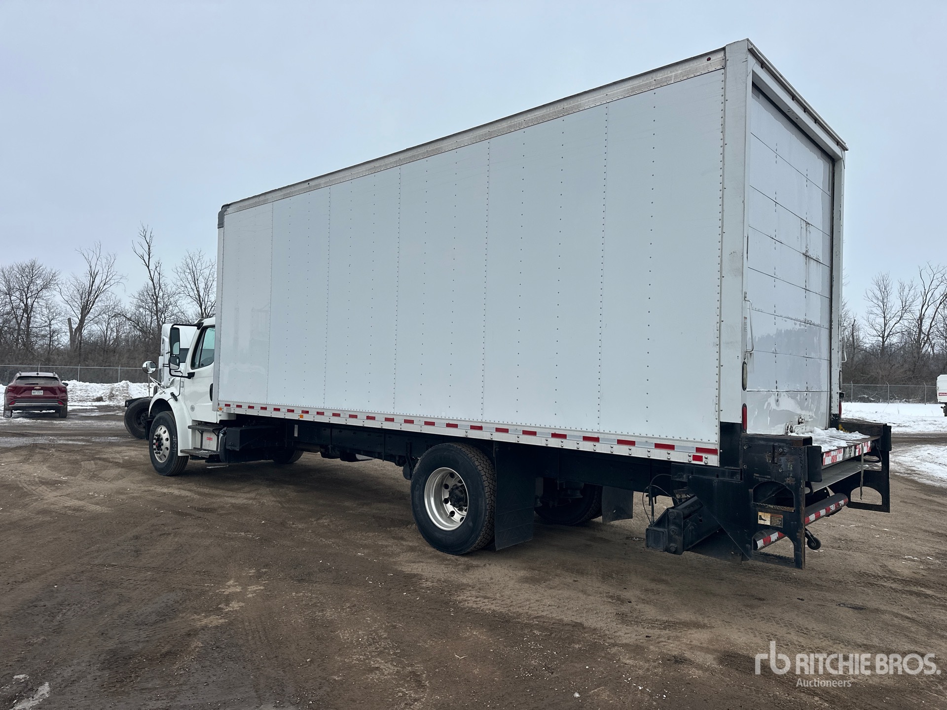 Cummins ISB 6 Cylinder 6.7 L 260 hp Engine, 2016 US EPA Label, CARB Compliant, Requires Diesel Exhaust Fluid, 5922 Engine hrs, Allison 3000 Automatic Transmission, 10000 lb Front Axle, 19000 lb Rears, Meritor Drive Axles, 5.56:1 Axle Ratio, 33000 lb GVWR, 11R22.5, Airliner Air Ride Suspension, 252 in Wheelbase, 26 ft x 102 in Wide x 92 in High Body, Liftgate