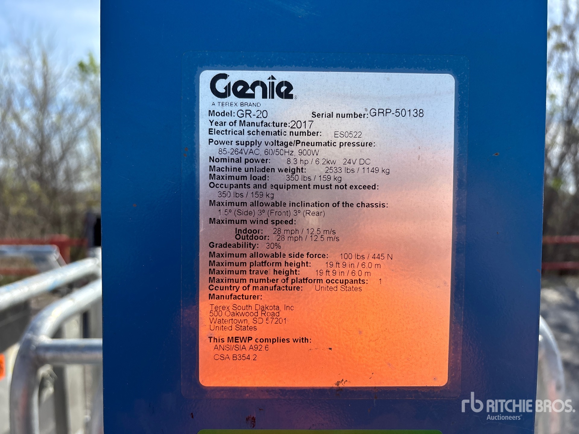 Die detaillierten Artikelinformationen stellen einen begrenzten Bericht dar, und Ritchie Bros. Auctioneers hat ausschließlich die Komponenten oder Aspekte der Geräte inspiziert, die hierin ausdrücklich aufgeführt sind. Sofern nicht ausdrücklich anders angegeben, gewähren wir keinerlei Zusicherungen oder Garantie, weder ausdrücklich noch stillschweigend, bezüglich der Geräte und ihrer Bestandteile einschließlich, aber nicht beschränkt auf Zusicherungen oder Garantien bezüglich Funktionalität, Konformität oder Einhaltung von Sicherheitsstandards, Forderungen zuständiger Behörden oder Regulierungsbehörden, Eignung für einen besonderen Zweck oder Marktgängigkeit. Es wird Ihnen ausdrücklich empfohlen, vor dem Bieten selbst eine genaue Prüfung der Artikel und Geräte durchzuführen.
