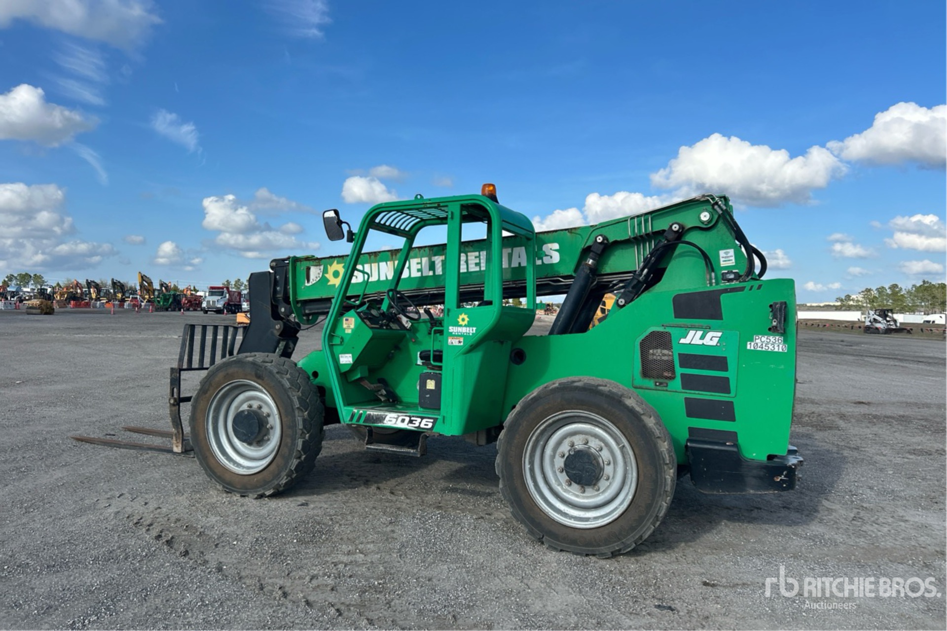 Open Operator Station, 36 ft Max Lift Height, 6000 lb Max Lift Capacity, 72 in Forks, Manual Coupler, Frame Leveling, 370/75-28 Foam Filled Tires