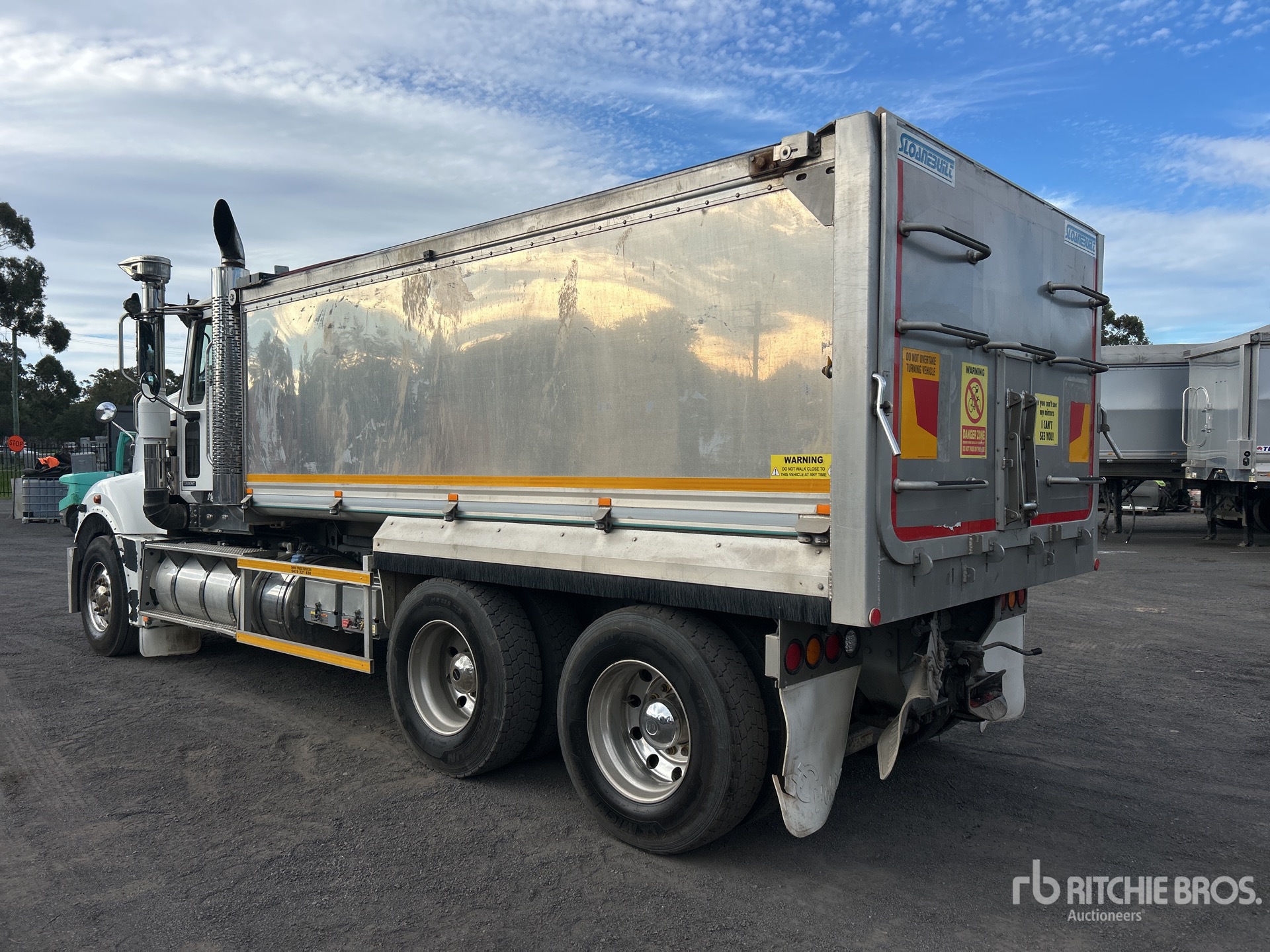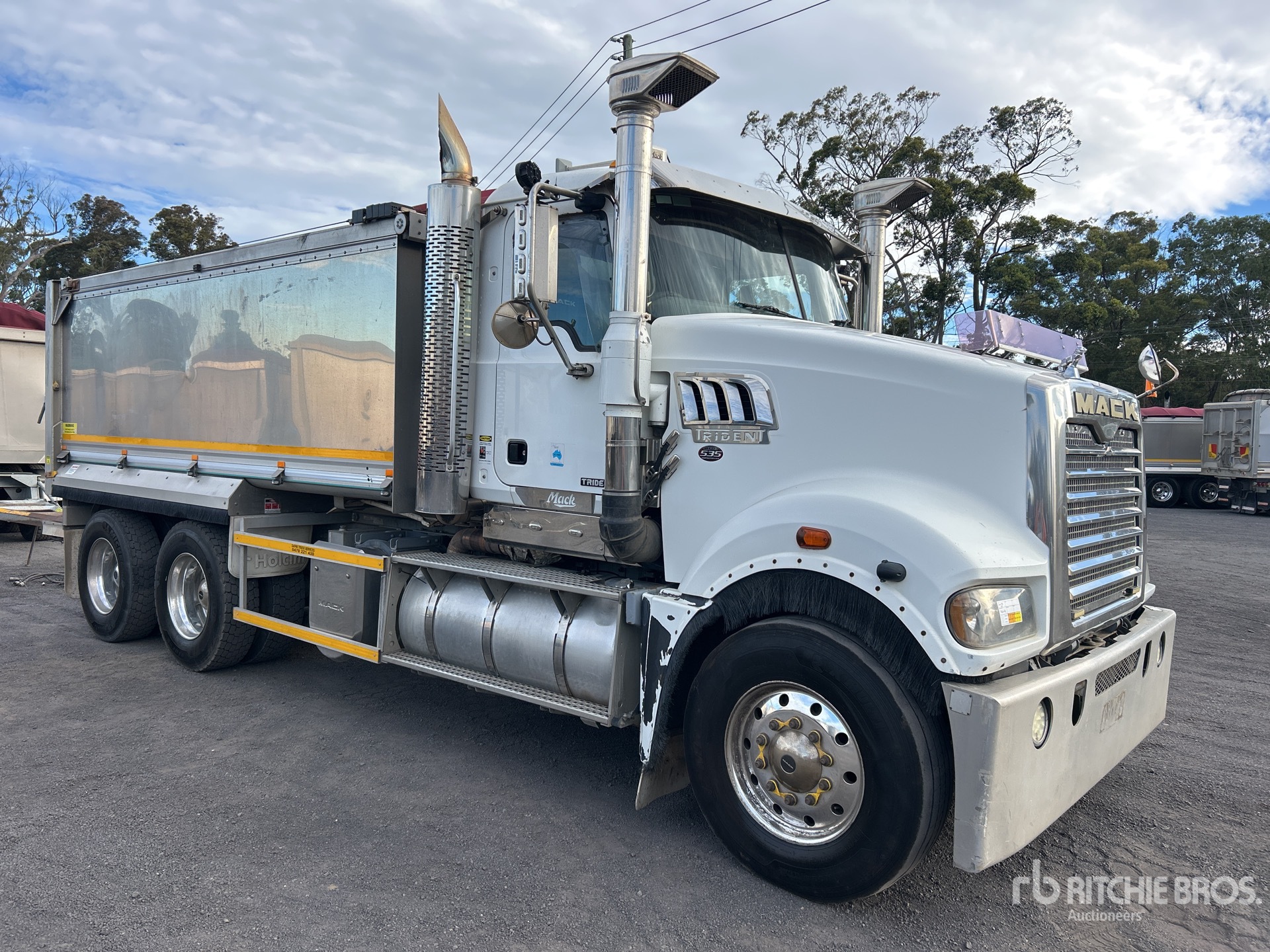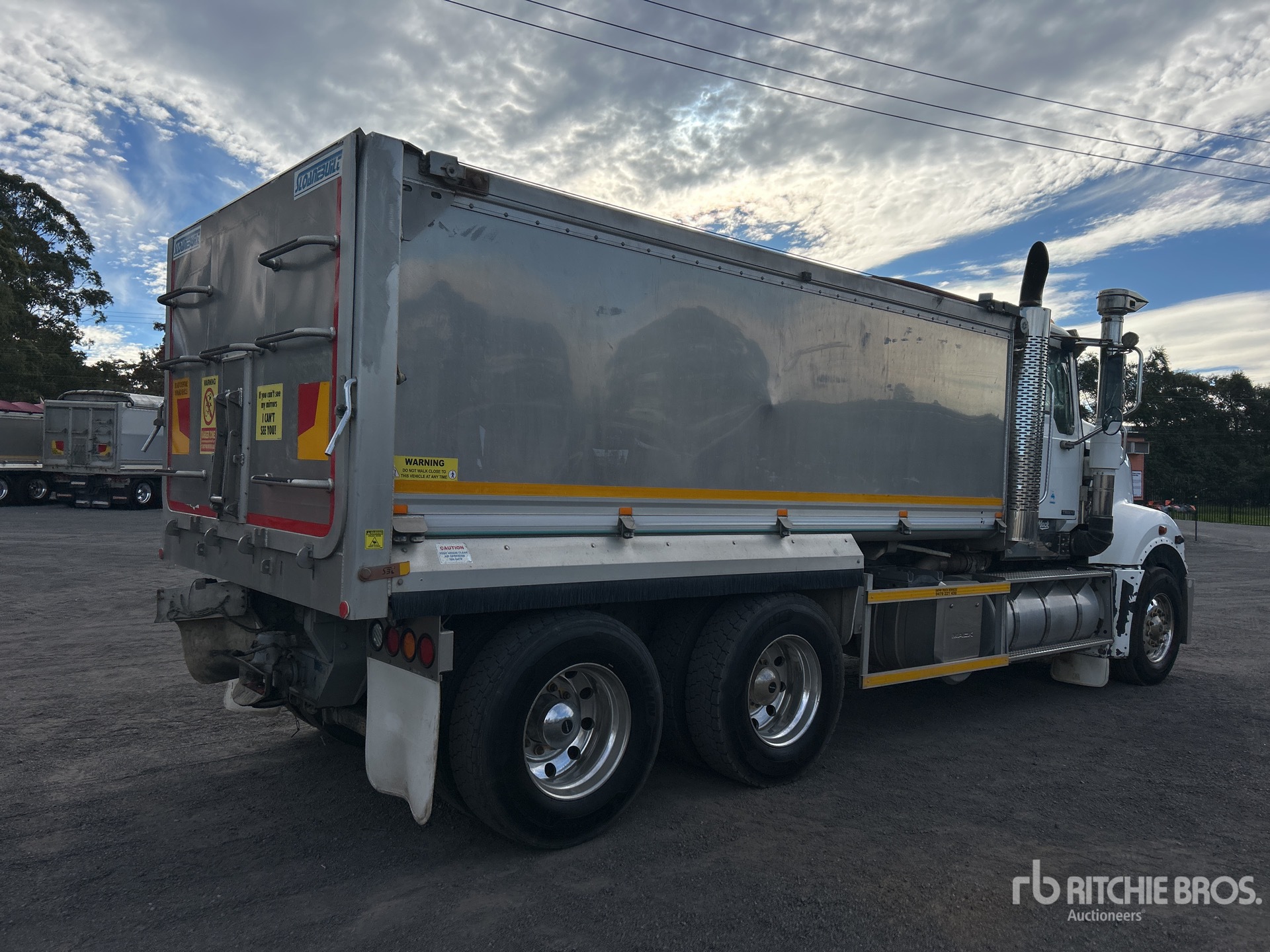 Mack MP8 535 hp Engine, Requires AdBlue, 22076 Engine hrs, Exhaust Brake, Mack mDRIVE Automatic Transmission, Double Differential Locks, 295/80R22.5 Front Tires, 11R22.5 Rear Tires, Air Ride Suspension, 5500 mm Wheelbase, PTO, Hydraulic System, Sloanebuilt 4700 mm Long x 1300 mm High Rock Sheeted Alloy Body, Electric Roll Tarp, Rear Hydraulics, Tailgate Chute, Ringfeder, GVM 27.6 t, Disc Brakes