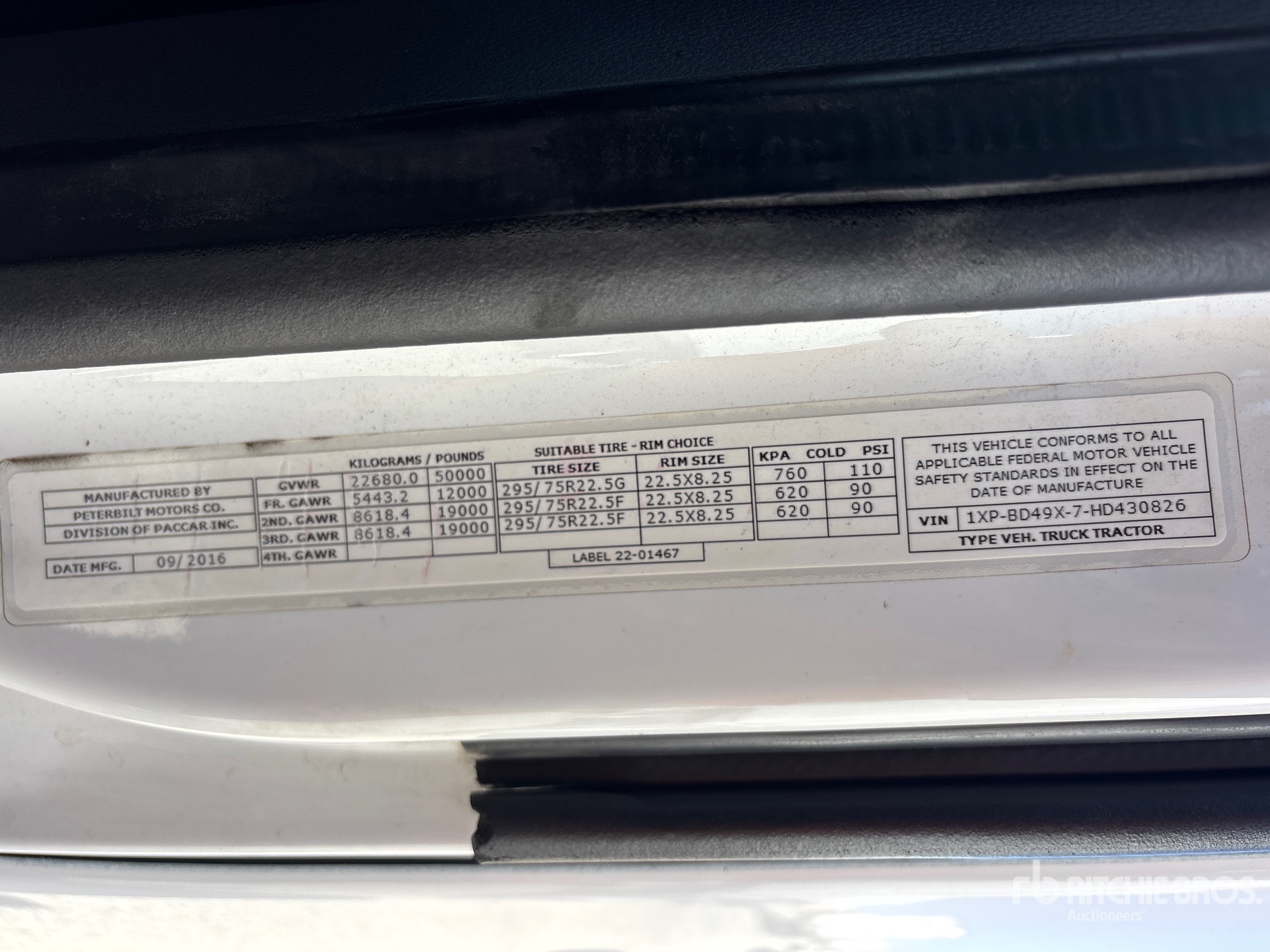 Located in Lane 3 Spot 6, Cummins ISX15 450 hp Engine, 2016 US EPA Label, 9316 Engine hrs, Eaton Fuller 12000 lb Front Axle, 38000 lb Rears, 50000 lb GVWR, Engine Brake, Double Differential Locks, 177 in Wheelbase, Air Suspension, 275/80R22.5 Front Tires, 275/80R22.5 Rear Tires, Air Sliding 5th Wheel, Dual Fuel Tanks