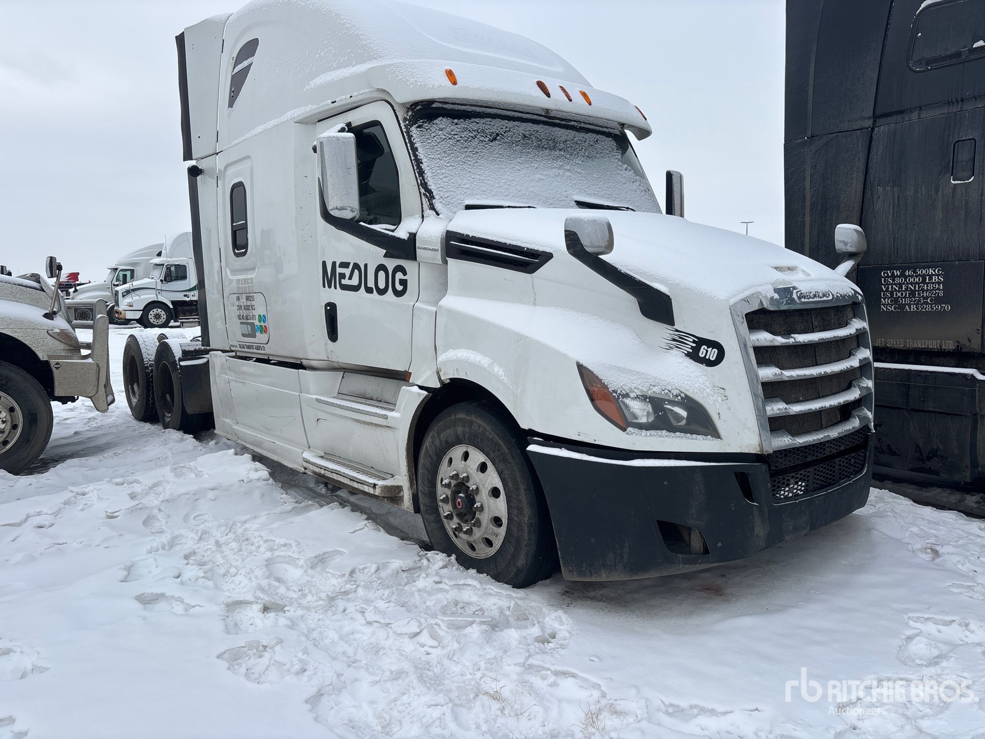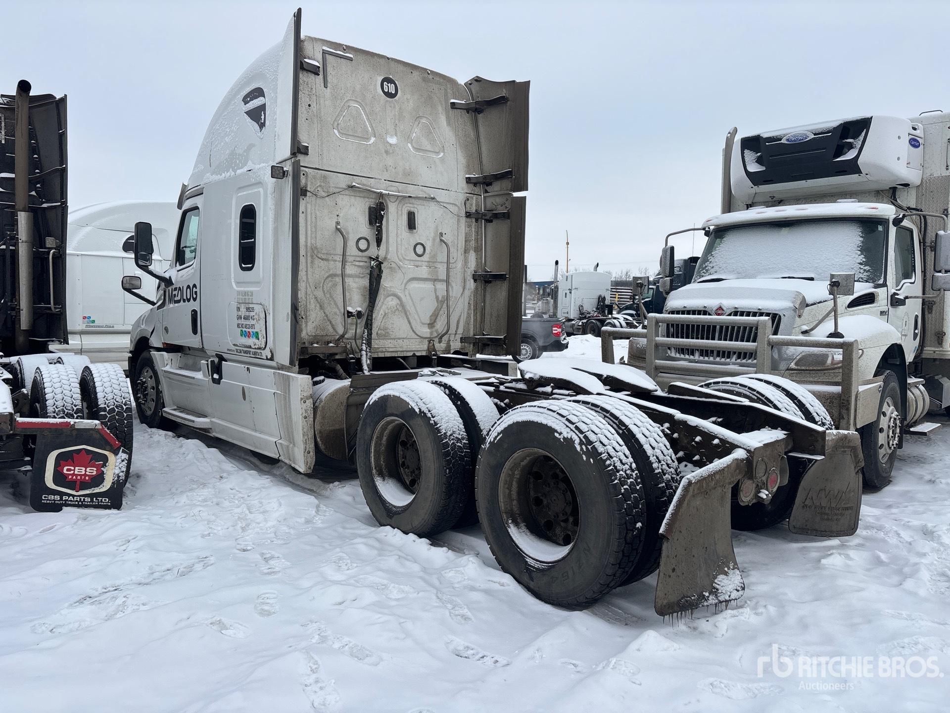 Detroit DD15 505 hp Engine, Detroit DT12-1650-OH1 12-Speed Automated Transmission, 13220 lb Front Axle, 40000 lb Rears, 53220 lb GVWR, Engine Brake, Differential Lock, 60 in Sleeper Cab, Bunk Beds, 233 in Wheelbase, Air Suspension, 11R22.5, Air Sliding 5th Wheel, Dual Fuel Tanks
