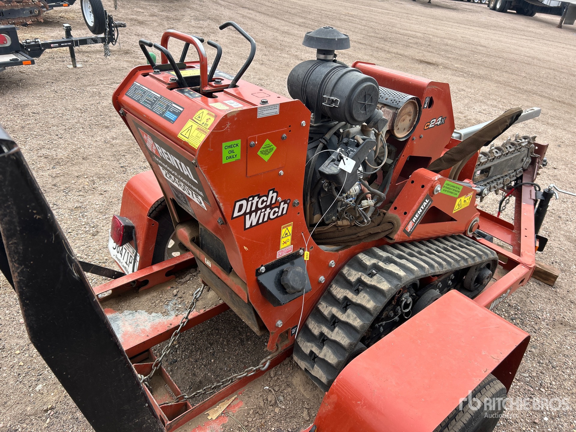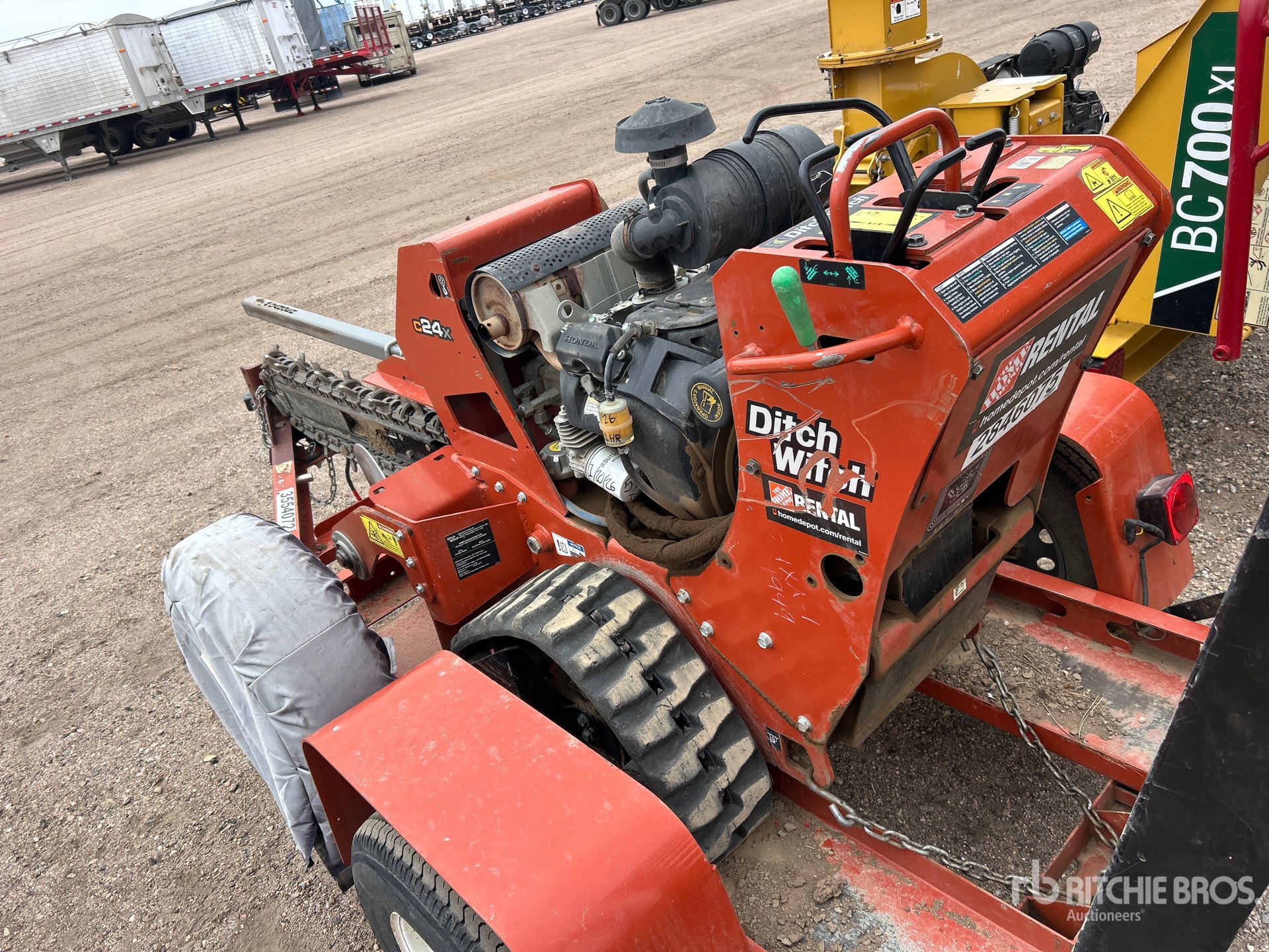 2018 US EPA Label, Honda GX 690 2 Cylinder Gasoline Engine, 4 in Wide x 54 in Long Rock Trencher Chain, 8 in Rubber Tracks