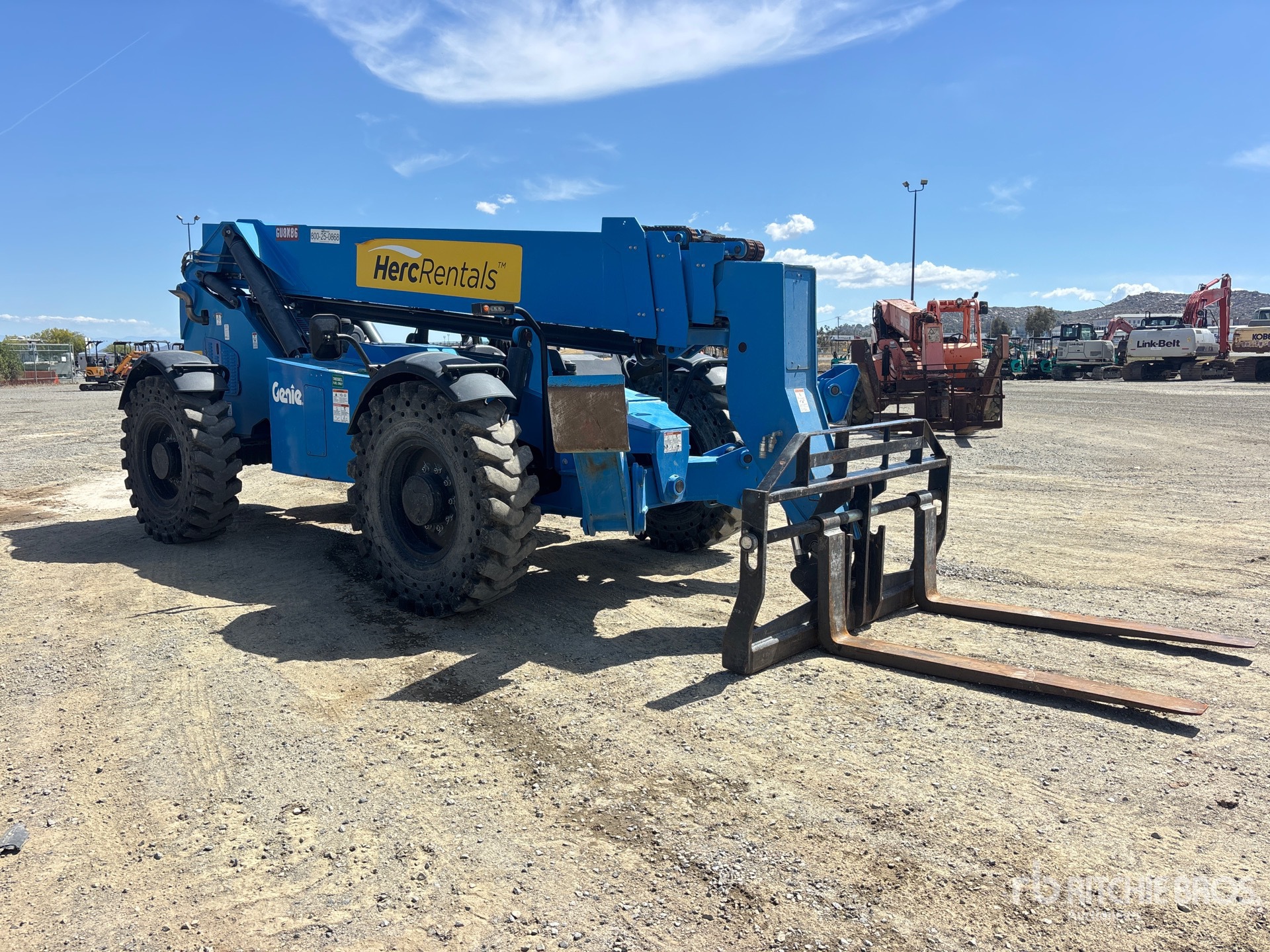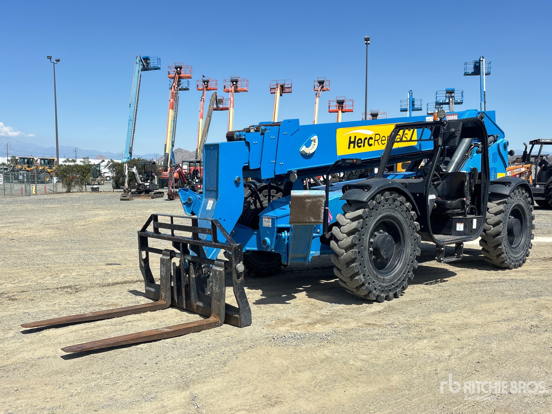 Open Operator Station, 56 ft Max Lift Height, 10000 lb Max Lift Capacity, 48 in Forks, Side Shift, Tilt Carriage, Manual Coupler, Outriggers, Auxiliary Hydraulic Plumbing, 14.00-24 Aperture Tires