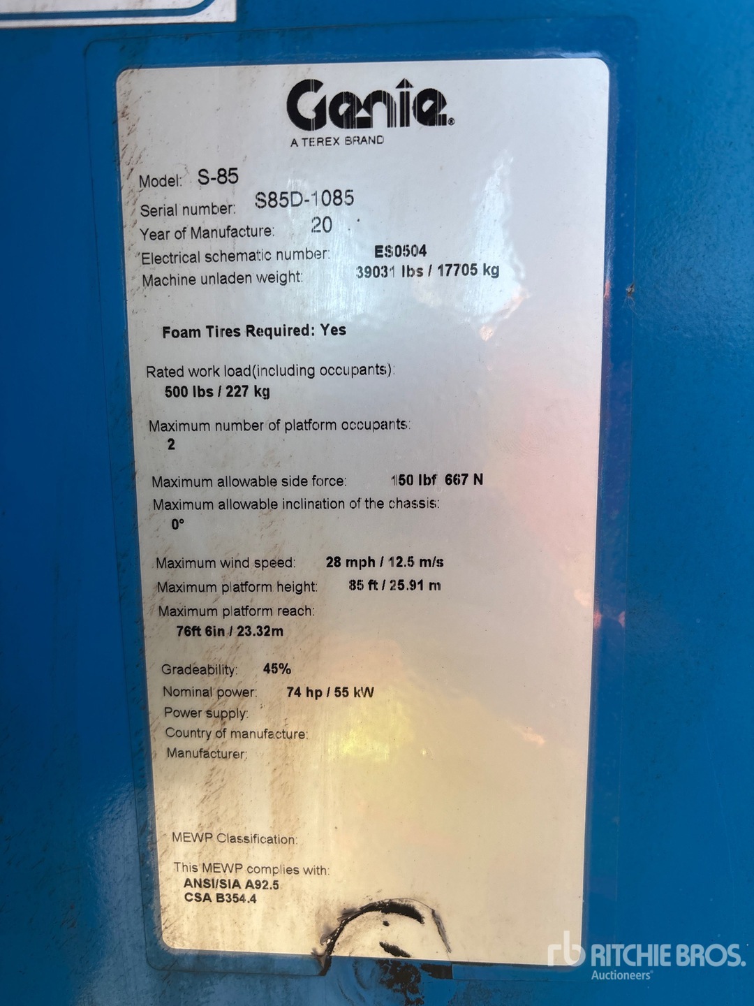 Located in Lane 7 Spot 16, 85 ft Max Platform Height, 500 lb Max Weight Capacity, Jib, Power to Platform, Onboard Generator, Tier 4, 2018 US EPA Label, CARB Compliant, Deutz TD 2.9 L4 4 Cylinder 74 hp 2.9 L Diesel Engine, 18-625 Foam-Filled Tires, Equipment-from-Herc-Rentals