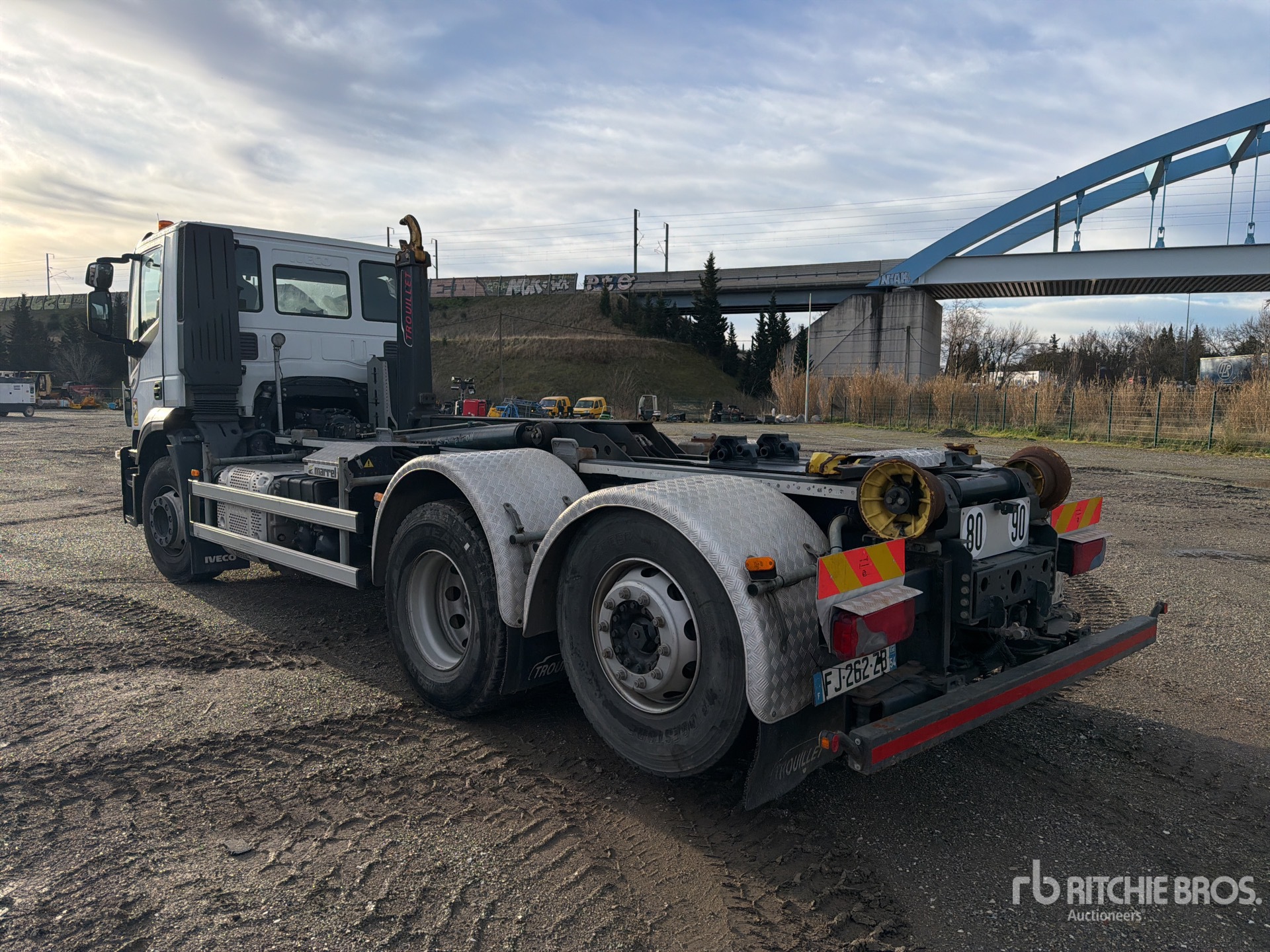 6 Cylinder 360 hp Engine, Requires AdBlue, Euro 6, Retarder, Automatic Transmission, 315/80R22.5, Steerable Air Lift Pusher Axle, Air Ride Suspension, 2019 Marrel AL20 S55 Roll-Off Body