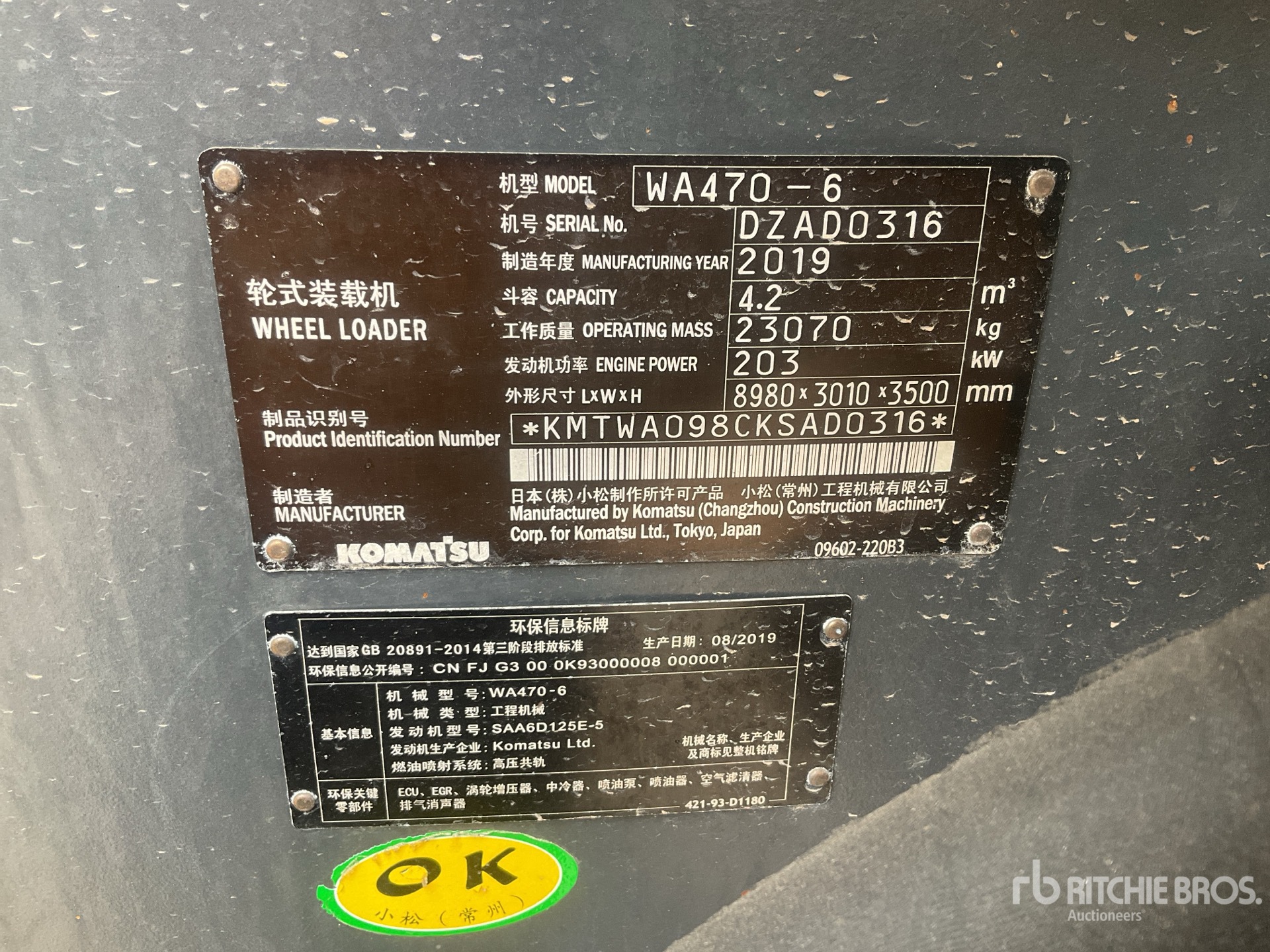 Die detaillierten Artikelinformationen stellen einen begrenzten Bericht dar, und Ritchie Bros. Auctioneers hat ausschließlich die Komponenten oder Aspekte der Geräte inspiziert, die hierin ausdrücklich aufgeführt sind. Sofern nicht ausdrücklich anders angegeben, gewähren wir keinerlei Zusicherungen oder Garantie, weder ausdrücklich noch stillschweigend, bezüglich der Geräte und ihrer Bestandteile einschließlich, aber nicht beschränkt auf Zusicherungen oder Garantien bezüglich Funktionalität, Konformität oder Einhaltung von Sicherheitsstandards, Forderungen zuständiger Behörden oder Regulierungsbehörden, Eignung für einen besonderen Zweck oder Marktgängigkeit. Es wird Ihnen ausdrücklich empfohlen, vor dem Bieten selbst eine genaue Prüfung der Artikel und Geräte durchzuführen.