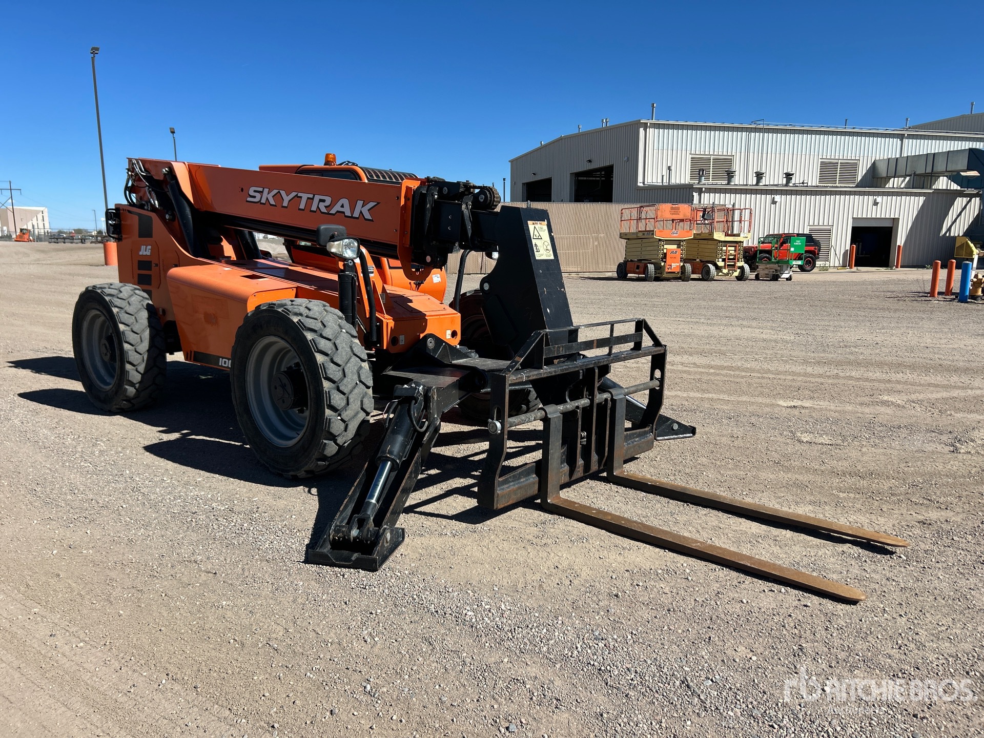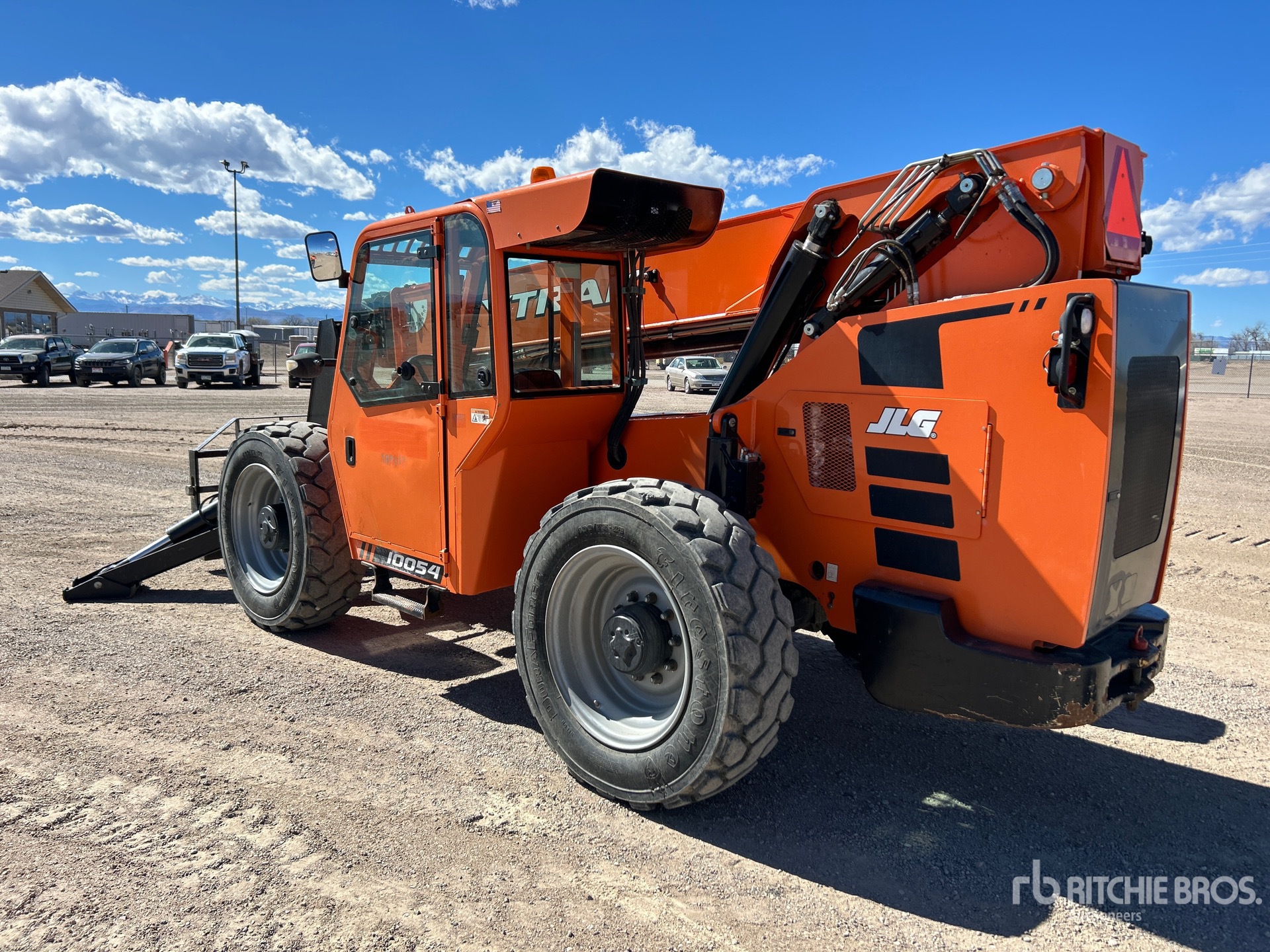 Enclosed Cab, 54 ft Max Lift Height, 10000 lb Max Lift Capacity, 72 in Forks, Manual Coupler, Outriggers, Frame Leveling, Auxiliary Hydraulic Plumbing, 400/75-28 Tires