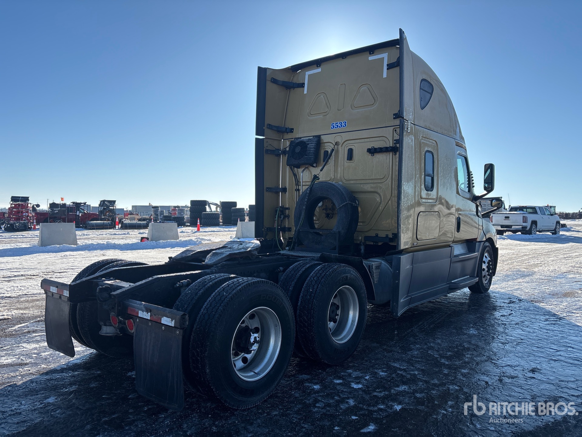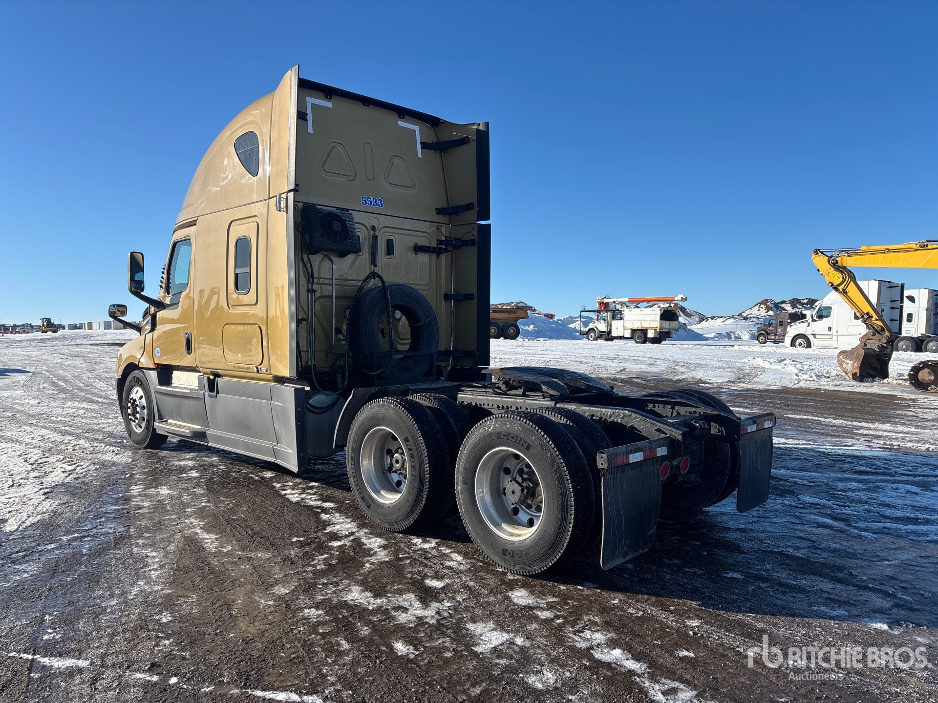 Detroit DD15 505 hp Engine, 17334 Engine hrs, Detroit DT12-1750-OH1 12-Speed Automated Transmission, 13300 lb Front Axle, 40000 lb Rears, 53300 lb GVWR, Engine Brake, Differential Lock, 70 in High Rise Sleeper Cab, 229 in Wheelbase, Air Suspension, Aluminum Wheels, 11R22.5, Air Sliding 5th Wheel, Dual Fuel Tanks