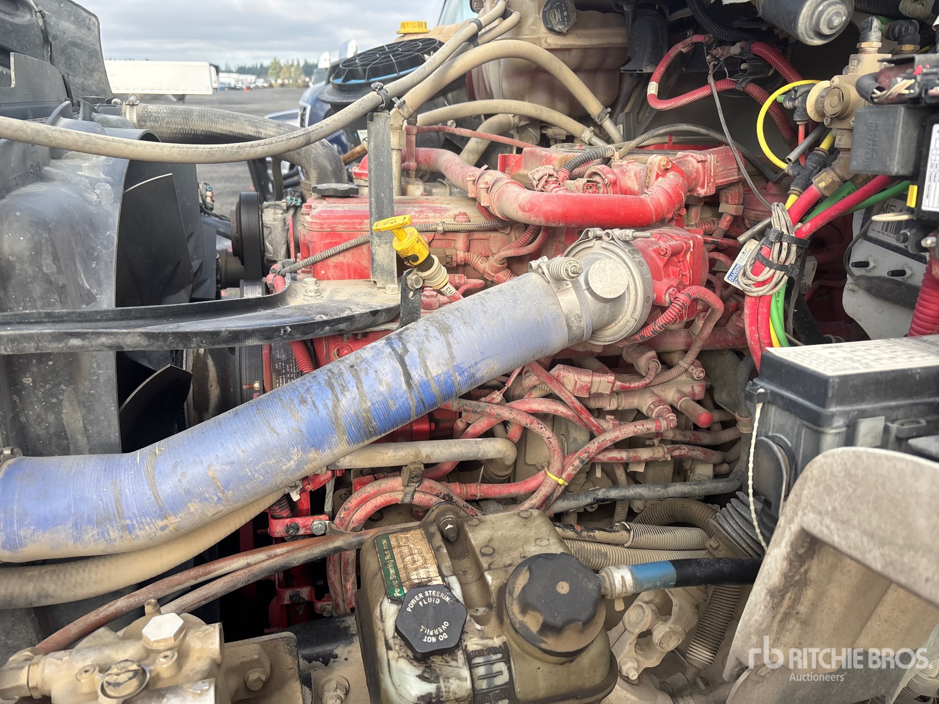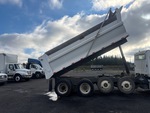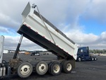 Cummins L9 6 Cylinder Diesel 300 hp Engine, 2019 US EPA Label, Requires Diesel Exhaust Fluid, 6338 Engine hrs, Allison Automatic Transmission, 18000 lb Front Axle, 46000 lb Rears, 64000 lb GVWR, 315/80R22.5 Front Tires, 11R22.5 Rear Tires, 2 Steerable Air Lift Pusher Axle, Double Frame, Rubber over Walking Beam Suspension, 236 in Wheelbase, PTO, 18 ft Long x 3 ft 8 in High Steel Body, Round Bottom, Bed Vibrator, Electric Roll Tarp