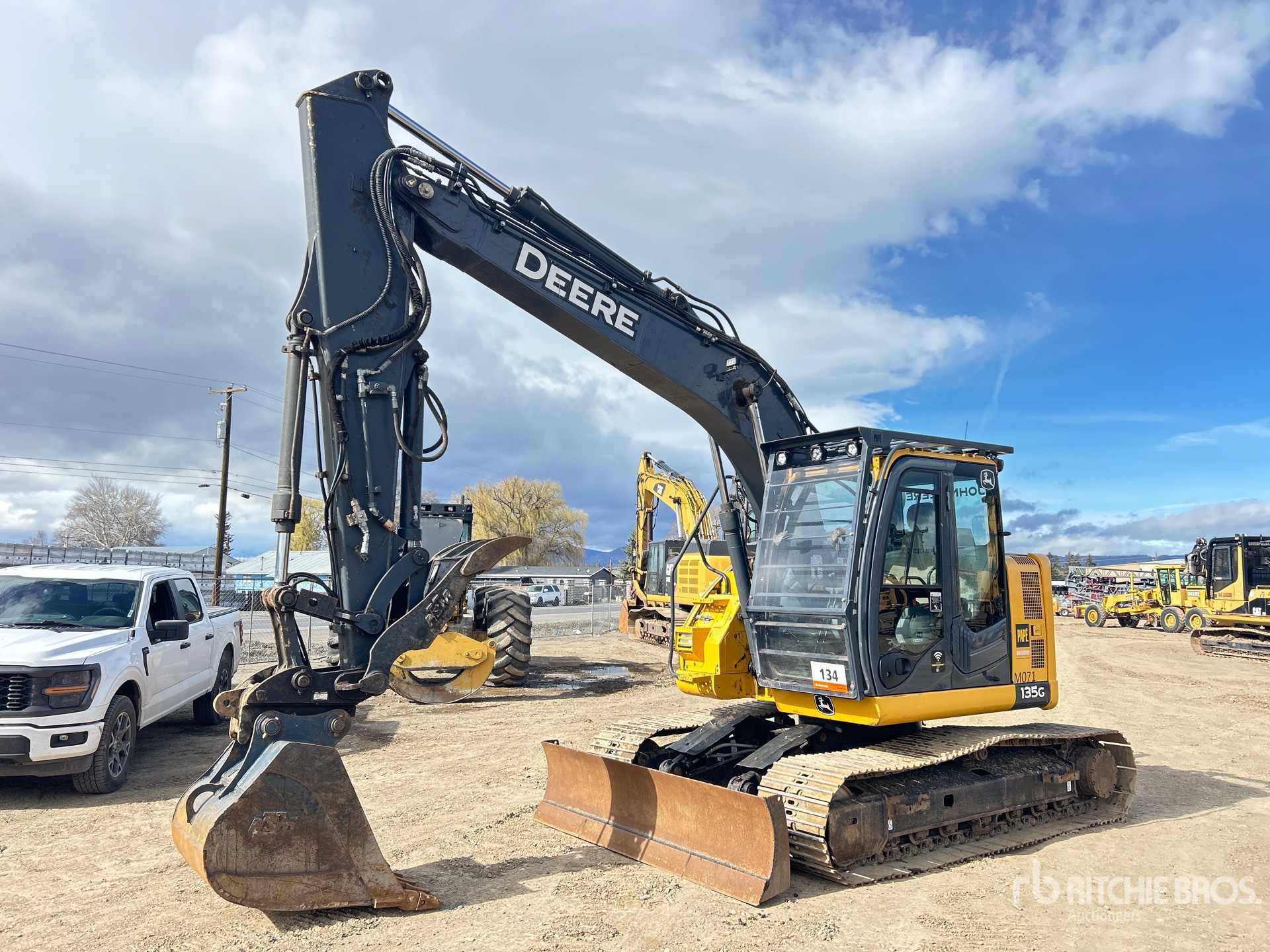 Air Conditioner, Control Pattern Changer, Rear View Camera, Requires Diesel Exhaust Fluid, 9 ft 10 in Stick, Auxiliary Hydraulic Plumbing, Backfill Blade, 23.5 in Triple Grouser Track Shoes, Hydraulic Quick Coupler, 36 in Digging Bucket, Hydraulic Thumb