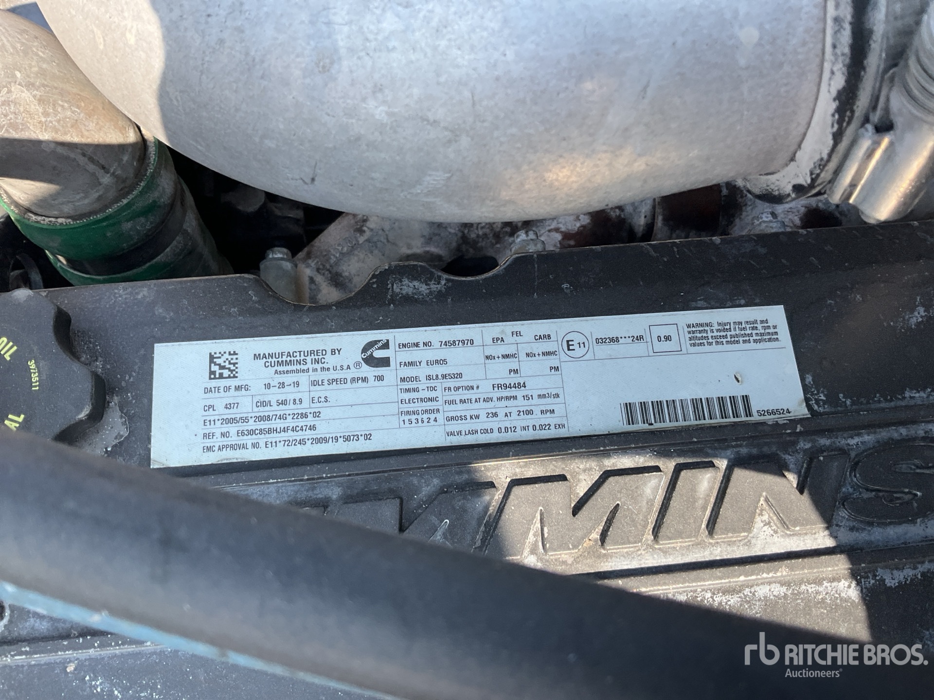 Cummins 6 Cylinder Diesel Engine, Engine Brake, Eaton Fuller 10-Speed Manual Transmission, 12350 lb Front Axle, 40000 lb Rears, 11R22.5, Hendrickson Air Ride Suspension, 243 in Wheelbase, 175 in Cab to Axle, 275 in Cab to End of Frame