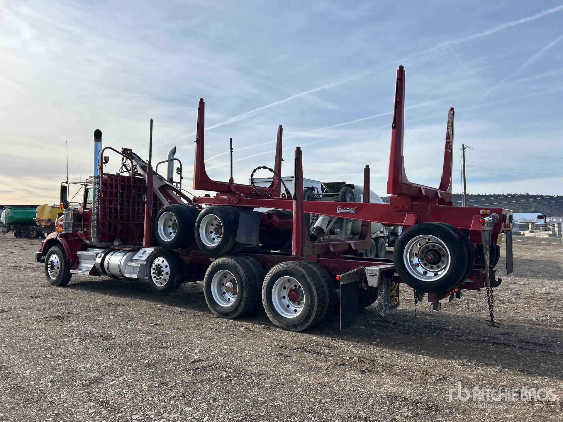 Cummins 6 Cylinder Diesel Engine, 2019 US EPA Label, Requires Diesel Exhaust Fluid, 9952 Engine hrs, Engine Brake, Eaton Fuller RTLO-1891 18-Speed Manual Transmission, Double Differential Locks, 14320 lb Front Axle, 46000 lb Rears, Meritor RT-46-164PEH Drive Axles, 4.10:1 Axle Ratio, Aluminum Wheels, 11R24.5, Steerable Air Lift Pusher Axle, Rubber over Walking Beam Suspension, 271 in Wheelbase, Cab Guard, Vulcan V340 Scale w/ Digital Readout, SOLD WITH - 2020 General PTAP-7988 Tri/A Log Trailer, Trailer S/N- 1G9G2VD3XMA008009, ( 2 ) 5 ft 8 in Adjustable Bunks, Lunette Ring Hitch, Lift 2nd- Axles, Aluminum Wheels